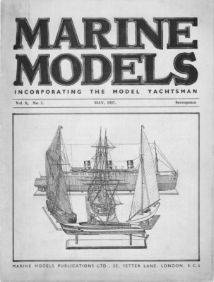 ‘ } WS Saws Li Ge we WLLL WYZA, M4 G \ MSMQq Witt $ S SMOOOO “Gana ittttldd Wd SS MW Same WN ~ WIM tiitl VhddddddéddidddMy G Yn r Ya SN Ny » N MAMA N titttdtti tists N N lll S SS SSLLSSSSDSSSSLSSTLTSLISSL IS DY S 777 Lc ccccccuuccucccl Yoana sy NSN SESS SS N\ SS tt lititittittttiy Y/,Z % Y W Tim Witty \y a A “tonyJe S Nw ty, UstttttttsUME eday yu a ey Yl Oe NN N G/L “iy; “iy >> ao Yoee Y Gis. LIZ, N ”””t tpt tty, Wr Ss ena “ip, N Wye M1ttttN, XS Ly le MMA NG N CARAS ESAS Now AAA Q SASAAAAAAHSS INCORPORATING No.1. YACHTSMAN APRIL, 1937. Sevenpence ae sr A} Va wurst = @ Gere mis Ma) ‘| , “= ————— \ Mi VW] iy | , ‘| a A ‘ often: —— SS SSS itu ra LOR Reece. POU Sarma ae SA MM Aaa SIN TU 7 — vii WA ANNUNKANANIIRIT eS NA MODELS HEARN i lly un < WEN Y, \, Sl ‘ . ih nT - | ll ! Ala ea al it Nai aie et cntreame/ MARINE MODEL UT 3 NNT PUBLICATIONS (jal Vol. X, THE LTD., 52, FETTER LANE, LONDON, PCs — =— ti ‘neBrisk TTEWELLYN RYLAND LIMITED, BIRMINGHAM, ENGLAND “%2%¢°” = FINEST SOFT PINE Specially selected for Model Boat All Building. thicknesses from WHITE HEATHER Racing Model Yachts J. ALEXANDER & SONS 26, Victoria Parade, Ashton, Preston, Lancs. 4” to 3”, widths up to 24” Expert Model Yacht Builders ALSO FITTINGS SPECIALISTS Prime Honduras Mahogany (30 years’ experience) * Alexalight ’’ Metal Spars. Practical Sail Makers. Accessories. CHETHAM TIMBER Co. Ltd., 70, FINSBURY PAVEMENT, LONDON METROPOLITAN E.C.2 7418 Power Boat Hulls. Send Stamp for Lists Racing Model Yachts WHITE HEATHER TRADE SUPPLIED When replying to Advertisers please mention MARINE MODELS. PT hdCOLT INCORPORATING THE MODEL YACHTSMAN Vol. X, No. 1. Published on the Seventh of each Month 5 April, 1937 EDITORIAL ITH the present number we com- VG mence our Tenth Volume. Since the Magazine started it has developed very considerably, and we hope that the present volume may show equal advance on its predecessors. As a number of contributions for the March number arrived very late, we were not able to complete the yearly Index in time for it to be issued with that number, so readers will find it enclosed with the present number. We receive frequent letters from readers telling us that they get so much pleasure and information from their collection of bound volumes of MARINE MODELS, and it ts a fact that information on almost any subject connected with marine modelling can be found in our collected pages. A report of the Model Yachting Association Annual General Meeting appeared in our last number. Readers will have noticed that the discussion of the proposed new Constitution was deferred for 12 months. This was a very wise move in view of the issues involved. Although not specifically stated in the report, one of the most important points raised is that the work of the Association has grown to such an extent that its income is no longer equal to its expenses. This raised the point as to whether income should be increased or expenses lowered. Another important point was that certain special funds showed deficits, whilst others were over-subscribed, which led to the natural suggestion that the Council should have power to transfer all surplus funds if required. Now obviously the Association cannot go on over-expending its income, though fortunately balances in hand enabled matters to be adjusted on this occasion. The main expenses of the Association may be grouped under three headings—government of the sport (which includes printing rules, etc.), propaganda (which includes sending officials to various regattas and towns, taking part in overseas regattas, etc.), regatta organisation and provision of prizes. It was suggested that the amounts allocated for prizes might be very considerably reduced, and possibly medals substituted for expensive prizes. The income of the Association is in the main derived from Club and Individual Membership subscriptions, but regatta entries also provide something, and, in addition, there are special funds raised for various events. The latter must remain a purely voluntary matter, and if an increase is needed other sources of revenue must be augmented. Two suggestions to this end have been put forward, and without attempting to advocate either, we will briefly state what they are. The first is that a Registration Fee of ls. per boat be charged on registration or re-registration. As there are approximately 2,000 boats 2 MARINE in the number of boats sailed, whereas at present a club with 60 boats of a class can only enter the same number as one with three. The argument against it is that the better-off clubs are favoured. In either case the amount contributed by individuals is only increased by a few pence a year, and, though it might look a lot to double a club’s contribution, it actually amounts to very little per member. The alternative is, of course, to limit the activities of the Association. Possibly, however, other schemes will be evolved before next year when the matter will have to be settled. In publishing the Alterations to the I.Y.R.U. Sail Measurements last month, we think we made it clear that though the I.Y.R.U. has adopted these, their formal adoption by the M.Y.A. has to follow before they are enforced for models. It would be wise for those embarking on new constructions to bear them in mind, however. The greatest change is in the method of measuring a mainsail, and this only makes a difference of about 10 square inches. SESE. SOP Sec eee ee {saga on the Register, and each registration lasts two years, this would give the Association an additional income of £50 per annum, whilst only costing the individual 6d, per annum. The second was a rather more complicated scheme and, affected club affiliations. It was suggested that clubs be charged for membership on the number of members they have. Clubs with 6—10 members might, at the Council's discretion, be admitted for 10s. 6d., and have one vote at General Meetings. Clubs 