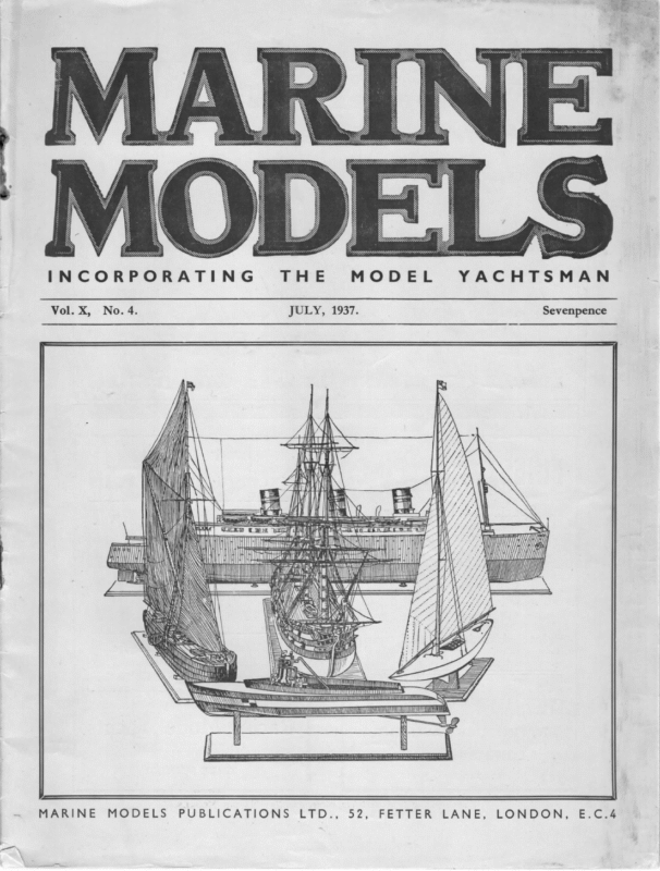 e Y y y ZY % sttiiiitlttTtlt da Vi Y YZYZyZZZz “iy INCORPORATING MODELS PUBLICATIONS LTD., J 2 FETTER f=} MARINE No. 4. > Vol. X, y GY , ZYgg y ZY Z YA << >V,i Us YY WZ E bg) GYUL ; Zig 4 CPA —A vo Aa ZYyi, Li S Y UYZ yti,WYVilaZZ 4 Z Z QQ Qq N LANE, LONDON, E-Cie One of Twenty-nine EMPIRE FLYING BOATS Under construction by Short Bros. (Rochester), Ltd., for Imperial Airways Protected with “ RYLARD ” Products Sole Manufacturers : LLEWELLYN RYLAND, Ea crs See LTD. ee ONL Una : BIRMINGHAM REN Gntay Mee dey Ace eee FINEST SOFT PINE} | Racine Model Yachts Specially selected for J. Model Boat Building. All thickneseee trent 26, Victoria Parade, Ashton, Preston, Lancs. 4” to 3”, widths up to 24” Expert Model Yacht Builders ALSO FITTINGS SPECIALISTS Prime Honduras Mahogany ALEXANDER & SONS (30 years’ experience) « Alexalight ’? Metal Spars. Practical Sail Makers. Accessories. CHETHAM TIMBER Co. Ltd., Power Boat Hulls. Send Stamp for Lists 70, FINSBURY PAVEMENT, Racing Model Yachts METROPOLITAN 7418 TRADE SUPPLIED LONDON E.c.2 WHITE HEATHER When replying to Advertisers please mention MARINE MODELS. Vol. X, No. 4. Published on the Seventh of each Month July, 1937 EDITORIAL A S far as model yachtsmen and model powerboatmen are concerned, the most important event of the season is undoubtedly the prominence which they have attained in the B.B.C. Television Programmes. It may be considered that Television is in its infancy and present audiences are small, Yet the time may come sooner than many people think when almost every house has its set as they have wireless to-day, and the B.B.C. has recognised that our sport is highly suitable as a television spectacle. Moreover, it is not such a long step from television programmes to news bulletins. The M.P.B.A. has now officially recognised a new speed record for model hydroplanes. This was made on Saturday, March 27th, at Ashfield, near Sydney, N.S.W., by Mr. F. H. Angwin, with a flash steamer running on a circuit of 202.4 ft., when 10 laps were covered in 28 secs. dead, approximately 49.286 m.p.h. In our sports very often insufficient credit is given to those who organise regattas, etc. An immense amount of preliminary work is entailed, but those who do it seldom figure in the limelight. An instance of this is the. recent National 10-rater Championship. The account we published was exactly as sent us, but, unfortunately, no mention was made of Mr. Jermyn Vincent-Hill, the indefatigable Secretary of the M.Y.A. 10-rater Regatta Committee, or of his colleagues on the Committee. Possibly, as two of these gentlemen were responsible for our report, their natural modesty prevented them from mentioning those responsible for the preliminary organisation. In recent Editorials we have referred to the Balance Sheets submitted to the Annual General Meeting of the M.Y.A., and the deficit shown on the A-class Regatta Fund. It has now been discovered that an erroneous Balance Sheet was passed by the Auditors, and submitted to the Association. One of the amounts for prizes was accidentally charged up twice, and, instead of a deficit the fund actually had a very small balance in hand. In one respect this is satisfactory, but in another way it is most disturbing that audited accounts can thus be incorrect. The Auditors are not to be blamed for this. The cause of the mistake is that several people receive and pay out money instead of everything being done by the Treasurer of the Association. It seems very unsatisfactory that funds raised in the Association’s name should be handled in this fashion, and it would be only businesslike if receipts and payments were only made by the authorised officer, and all funds were kept in the Association’s own banking account. This is not intended as a reflection upon anyone, but as a protest against unbustnesslike methods that would not be tolerated in any public company or corporation. 80 MARINE MODELS MEASURING THE 36-in. RESTRICTED CLASS By W., J. E. Pike, Hon. Secretary, M.Y.A. fore end of the boat, which consists of a frame supporting the bow of the boat. This frame is adjustable for height by means of the knurled screw shown immediately underneath the frame, and the whole bow support can be moved along the baseboard, being fitted into position by means of pins which fit into holes in the baseboard. Just to the rear of the bow support can be seen the depth gauge, and the photograph No. 2 shows the model in position on the baseboard with the bow resting in the bow support, while the depth gauge is being applied at the bow. The boat shownin the photographs is Mr. F. G. Sparrow’s 36in. Restricted class “* Peshto.”” The photographs are by Mr. D. E. H. Box, and his excellent photographs should make it easy for anyone to understand the method of measuring these models. See Notice to 361n. Class Owners appearing elsewhere in this issue of MARINE MODELS. N the May issue I called attention to a | method of measuring the 36in. class, and now, through the courtesy of the Guildford and District M.Y.C., I am enabled to show two photographs of the apparatus used. In photograph No. | the boat is shown floating in a tank, while on deck can be seen a spirit level fitted with the adjusting screws by means of which the level is set parallel to the water surface (1.e., horizontal). Note that in measuring these boats the spinnaker (or other running sail) is included when the boat is floated in the tank. Photograph No. | also shows the measuring apparatus used for measuring the depth. This consists of a board a little over 36in. in length. At one end of the board is fitted a vertical stop, against which the stern of the model is placed when being measured. The board can be set level by means of the three screws, two at the rear end and one at the front. There is also an adjustable support for the MARINE MODELS 81 GENERAL HINTS FOR BEGINNERS IN MODEL YACHTING By CHARLES DROWN (Continued from page 64.) } OUR model should now be