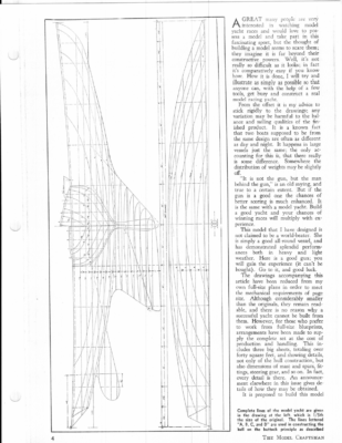 lidd ddddddddy y POO ‘UMM 8 N y Nay S N EAE OOOO Wann —ss“ : FN SS SS WH Le = dd WY” NS ‘ Ss THE No. 6. MODEL iW SN YACHTSMAN SEPTEMBER, 1938. SPECIAL NUMBER (WITH THREE DOUBLE Is. Model PAGE Yachts, SUBSCRIPTION Model Powerboats, ORDINARY RATES NUMBERS (INCLUDING PRICE SEVENPENCE SPECIAL SEPTEMBER 6d. Inland 8s. 6d. Overseas and MODELS 52, Model Steamers, 7s. PRACTICAL MARINE SUPPLEMENTS) 6d. Model Ships. MONTHLY. NUMBER AND TECHNICAL PUBLICATIONS LTD., FETTER LANE LONDON – E.C.4 \ sy Ww OS INCORPORATING N Wee \ Vol. XI, SS SY » Vill tlt piVili ~ S M8 4 db Yiitiiddiipliddy, Ye ystitilidigeiddd Ma oy”‘thls YY” SSS S yy Wh XS. Y, ZZ Yy G Vii Y LY C11. WeY, SS OQ POSTAGE) : ALEXANDER MINIATURE RACING YACHTS ALEXANDER eG BOATS o : : } ALEXANDER ALEXALIGHT FOR ALL ROUND SPARS PERFORMANCE LIGHT & STRONG ALEXANDER ALEXANDER SAILS FITTINGS FOR HARD WEAR Practical in Design and LONG SERVICE Perfect in Finish ALEXANDER ALEXANDER DESIGNS ACCESSORIES EXPERT AND EVERYTHING FOR ECONOMICAL THE YACHTSMAN ALEXANDER ALEXANDER For good & reliable ~ SECONDHAND GLUED-UP BLOCKS, BOATS SHAPED OR UNSHAPED ALEXANDER MODEL SAILING “WHITE HEATHER” SERIES 18”-1/10/0 J. 22”-2/5/0 26”-2/19/6 FOR THE YOUNG BEGINNER 30’-4/106 ALEXANDER 26, ASHTON SEND STAMP YACHTS VICTORIA & PARADE PRESTON © (UNATTACHED) FOR LISTS When replying to Advertisers please mention 36”-6/12/6 42” -9/9/0 SONS, LANCS. TRADE SUPPLIED MARINE MODELS. IX Vol. XI, No. 6. Published on the Seventh of each Month September, 1938 EDITORIAL Caaeiene Regatta, the most important event of the model yachtsman’s year, is over, and, looking back, one must regret the 1938 event as falling somewhat flat after the regattas of the last three or four years. There were fewer entries for the British A-class Championship than for many years, and with so few starters, a week was too long for the race, as organised. And, after the magnificent Internationals of recent years, what can one say of this year’s race? Five competitors in 1935 and 1936, six in 1937 (Norway, Sweden, Belgium, France, Germany and Britain), and two (Sweden and Britain) in 1938. Also our American cousins have been unrepresented since 1936! Although one understands how this arose, it is a disappointing setback. Actually, owing to the holder of the International Cup, Norway, being uncertain as to whether a lake in Norway would be available, it was not known until very late where the race would take place, and even then the holder was unfortunately unable to defend the title. Had it not been for the extremely sporting gesture of our Swedish friends in flying over at the last moment for the race, Britain would have had a sail-over for the International Cup. We trust Mr. Abrahamson and his mate, Mr. Kleverstrém, realise how much British model yachtsmen appreciated their visit. Quite candidly, we ourselves do not believe in Vane steering gear for racing on lakes, and though “ Gothia’ was in the prevailing weight of wind quite as fast as the British boat ** Seri,” she lost board after board (though very frequently by the narrowest of margins) through her inability to sail as direct a course as her opponent. Well, if Mr. Abrahamson and his mate could not win many boards, they certainly knew how to lose in the gamest and most sporting way possible. We hope to see them again next year, but equipped with Braine steering. We have heard from our friend, Monsieur G. Suzor, that he is starting a campaign in Paris to get a proper water for models, and we are sure all model powerboat and sailing men will wish him every success. We have been told quite frequently that very few mistakes or misprints occur in MarINE Mopets. Last month two beauties got through. In our Editorial the second and third lines were reversed, and in one sentence of * Y.Z.’s” article on “Model Sailing for Beginners’ somehow “N.E.” and “ N.W.” were also reversed. A paragraph about the latter will be found elsewhere in this issue, but at the same time this error was so obvious that it hardly needs mentioning. These errors should have been noticed when the proofs were read, and we apologise for having overlooked them. So far only one reader has written us on the subject, and his letter was no news to us as we had already noticed the slip and written a correcting paragraph! 142 MARINE MODELS THE NORFOLK WHERRY By G. COLMAN GREEN, M.R.S.T. RF’ over a hundred years the sailing wherry of Norfolk has been a delight to dwellers in those marshland areas and an inspiration to visiting artists. No Broadland scene was complete without its presence, most graceful of all goods-carrying vessels on inland waterways. In common with other types of local sailing craft, the wherryis rapidly disappearing, and it is only rarely nowadays that one is seen under way. The present articleis written in order to set on record something of their construction and characteristic features. Every feature about the wherry is the product of purpose and environment, and in many respects their construction was unorthodox, if judged by the standards of ordinary naval architecture and the practice of wooden ship construction. In addition, the wherryman had his own nomenclature, and in order to make their construction and rig intelligible to readers, | have given the usual names to the various parts in addition to the purely local ones. How and when these river craft originated is difficult to assess, and as the art of the early wherry-builders is practically a finished | and unwritten chapter, it is increasingly difficult to gauge the steps in their evolution. Like all great craftsmen, wherry-builders seemed to hand down the secrets of the trade from father to son, and as few of the early workers could read or write, we are at a loss to know their precise methods. Even the wherrymen, whom the writer knew in his youth, were illiterate and accustomed to use the chalk tally when loading and unloading their varied and valuabl