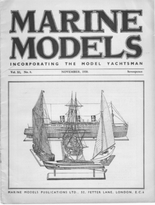 QES\ mR \« MOoO8o9 SS&S MOONSS MMORW N N MQ ’ Nw SSS SSI YWp, N59 WDD SSS RQVQ0400y Se NG >, VL SaSSwa a a) INCORPORATING No. 9. THE ES ma. WWM S Vol. XI, oe Ole SY . MG AANANOO8 S typi UMMM ts ttttd “ij Uy” “AYY” Uk Y (1 VAISS S74, Uttt1ttttht G WY fy Wy \ Ny \ AN x.“ SSS Ws“ SSN Yy N ~ Ya Sy N WWM NS WH = \ NX Y “ SS Y WSN YACHTSMAN MODEL Sevenpence DECEMBER, 1938. ed T MARINE MODELS PUBLICATIONS LTD., 52, FETTER LANE, LONDON, E.C. VERSATILITY IN MODELS WHITE HEATHER Racing Model Yachts J. ALEXANDER & SONS 26, Victoria Parade, Ashton, Preston, Lancs. Expert Model Yacht Builders (30 years’ experience) FITTINGS SPECIALISTS Whether it be MODEL RAILWAYS, MODEL ENGINES or MODEL SHIPS, we can give you the help you want. Our picture shows the ‘CUTTY SARK,’’ built from a set of our 12/6 parts. There’s something to while away your winter evenings. Send for our Waterlin Booklet No. 5, which contains pictures and details of all our 100 ft. and 50 ft. to the inch waterline model parts —including the ‘‘ QUEEN MARY,” * NORMANDIE,”’ “GREAT BRITAIN,’’ “ BRITANNIA,”’ “CUTTY SARK,”’ etc., each one 13/-, post free. For Model Railways get our fascinating new book ‘‘ Gauge *O’ Model Railways,’’ No. GR.5,, Price 3d. Complete Ships Catalogue, S.5, 6d. post free. For Gauge ‘OO’ Table Railways, get T.T.5, 2d. post free BASSETT-LOWKE, LTD. NORTHAMPTON SPECIAL scccscster: 2, corporation sie CHRISTMAS OFFER ! Everything to Build a 36 inch 0.A. Model Yacht “ Alexalight ’’ Metal Spars. Practical Sail Makers. Accessories. Power Boat Hulls. Send Stamp for Lists Racing Model Yachts WHITE HEATHER TRADE SUPPLIED Model Yachting Association (Suitable for Restricted Class) Build this Beautiful Exclusive Model from our Complete Set of Parts. Wood of Fine Mahogany. Every part cut to size and ready to assemble and finish. The Parts include, Building Board Complete, Stem Piece, Stern Piece, Deadwood, Keelson, Ribs, Inwales, Rudder, Deck (in one piece) and Planking. Also pattern for Lead Keel and Brass Bolts for same. All screws andnails for Planking. Constructional Plan, Sail Plan and Full Instructions. Sent Postage Paid for only 25/-. The Annual General Meeting of the Association will be held on Saturday, January 28th, 1939, at Anderton’s Hotel, Fleet Street, London, E.C.4, at 3 p.m. Nominations for election of Officers and Council should be in the hands of the Hon. Sec., M.Y.A., by January Ist, 1939. D. B. SHANKS (Dept. M.Y.), 57, WRIGHT STREET, RENFREW, SCOTLAND A Waterproof Glue Also Heat and Acid Proof. No more sewing joints. A permanent and Solid Waterproof Craft. Breaking strain in wooden joints, moist and normal, over 1,100 Ibs. per sq. inch. RECOMMENDED BY “MARINE MODELS.” Tin containing 2 oz. 8d., or 4 Ib. 2/1, post free, from Anglo-American Pharmaceutical Co., Ltd., GALEN WORKS, DINGWALL ROAD, CROYDON. Phone: Croydon 3118. SUBSCRIPTIONS, 1939 All subscriptions are due on January Ist, 1939, and should be paid before January 15th, 1939. M.Y.A. FIXTURES, 1939 The Hon. Sec. will be glad to have early notification of any change of Secretaries of Affiliated Clubs. A preliminary list of M.Y.A. fixtures, 1939, will appear in the January issue of Marine Models. W. J. E. PIKE, Trade Enquiries Invited. When replying to Advertisers please mention MARINE MODELS. Hon. Sec. INCORPORATING Vol. XI, No. 9. THE MODEL YACHTSMAN December, 1938 Published on the Seventh of each Month EDITORIAL A S this is our December number, we take this opportunity of wishing all our readers at home and overseas a very Happy Christmas, and a prosperous and peaceful New Year. 1938 has been a year of political disturbances, wars and rumours of wars. It has also been an exceptionally bad year for all business except those engagedin armaments, for we imagine those engagedin warlike preparation must have been enjoying a boom. Under these circumstances we suppose we must not grumble because MARINE MODELS has not increased its circulation to any extent, and we can only hope that 1939 will bring us a large increase, particularly among club members in this country. A letter from a reader is published elsewhere in these pages, asking for more club news. Well, the amount of space that can be devoted to club news depends entirely on our circulation among club members, and also on the number of regatta advertisements inserted by clubs themselves. When we held a ballot among readers some years ago to decide which were our most popular features, club notes came very easily at the bottom, and general articles and technical notes were the most popular. Since we held this ballot the contents of this Magazine have been regulated as far as possible by the opinions expressed by the majority of our readers. We were recently studying a list of the International Winners since the War, and it Was interesting to note that of the 16 races sailed by the A-class for the Yachting Monthly Cup, Britain has won 14, and Norway 2. Nine different nations have entered for these races during the period from 1923 to 1938, but only Britain has been represented every time. Studying the list of winning designers, we see that Mr. W. J. Daniels has designed the winner on eight occasions, and Messrs. Reg. O. Lance and Sam O. Berge, twice each. The following designers have designed the winning boat once: Dr. A. Thompson, Messrs. W. H. Davey and T. H. Willey, and Admiral A. Turner. All of these races have taken place in Britain, but international races have also taken place at Chicago (when “ Bostonia III,” designed by Mr. J. Black, beat ‘ Dawn,” designed by Mr. W. H. Davey), and at Hamburg (when “Fusilier,”” designed by Mr. Daniels, was the winner). * * * In the present number two of our serial articles come to a close, that on “ Model Yacht Sailing for Beginners,” and that on the ‘Norfolk Wherry.” We have a number of other interesting features in store for readers, which will be announced from 