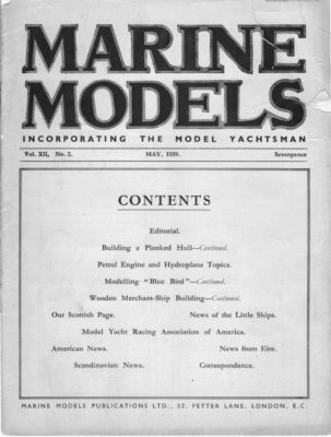 Marine Models: Volume 12, Number 1 – April 1939April 7, 1939Archives, Marine Models Title. Author. Summary Title. Author. Summary Title. Author. Summary Title. Author. Summary Title. Author. Summary S S . . RS » S Ss NS INCORPORATING Vol. XII, No. 1. S THE ZZ y i ae Y Y Vit G 4 Y Z Y y Y S \ Y NS AA N Sg X N S WYONG SSMS MODEL \\ 2 N S WN S W I QD SN SSS SSS AAAS 7] lj N s HOY &S GULL SSSA N N \ NN N Wd yy Yl 4 IQS SS N SS MIHARU Z V S . . VY VM ZDUT Vy DMA HHSS S SS RASS MOQ KW ‘ S yop yr ddddddddddéiUy Y SS ddd Vhs %, i, Vy y Y ~ gapeeameaas WN \N SS SS So ddd Y Y Dp Yo Y YP yn Viel Wy SS SSS Wo. N VccYj” LPWYhh Uf Fay Z Yilitisilifdd TMN Z S Ut ttttidttil Ye S ~ N ~ N N SJ Cit Y Z ZZ7, wy Ny \ Ny Wisin \ S NY SOM A°AAAIiAAN SS s SHO ws YACHTSMAN APRIL, 1939. Sevenpence CONTENTS ; Editorial. Building a Planked A System of Handicapping in Hull. Model Yacht Clubs. Our Scottish Page. News of the Little Ships. Wooden Merchant-Ship Building. Modelling Scottish “Blue M.Y.A. Bird.” Racing American News. Trim. News from Eire. soso MARINE MODELS PUBLICATIONS LTD., 52, FETTER LANE, LONDON, E.C. A STANDARD WORK MODEL SAILING CRAFT W. J. DANIELS SECOND and AND H. CHEAPER B. TUCKER EDITION This second edition of this work that has already been looked upon as a standard textbook has been thoroughly and carefully revised,.and it will still continue to be looked upon for model yachtsmen what Dixon Kemp did for yachtsmen. matter, and the chapters on designing, The authors have included in this new revision much fresh building and sailing have been almost entirely re-written. The volume contains large scale reproductions of five entirely new designs to the recognised racing classes, from any of which a handsome and able model can b2 built. In addition to these designs, the book includes a large number of diagrams illustrating the various points of designing, building, fitting out, Crown Quarto. CHAPMAN & HALL, and sailing referred to in the text. 208 Pages, 8 Plates and 129 Figures. LTD., I1, 15s. net. HENRIETTA STREET, LONDON, W.C.2 Special Marine Coatings “RYLARD” The World’s Varnish. Best Marine “RYLARD” Enamel for Boot-tops. Topsides and “OGLOSO ” The Finest White MANUFACTURED Enamel. BY: LLEWELLYN RYLAND LTD. Balsall Heath : Birmingham : England When replying to Advertisers please mention MARINE MODELS. Ee NIST SS —__ INCO PORATING THE MODEL YACHTSMAN Vol. XII, No. 1 April, 1939 Published on the Seventh of each Month EDITORIAL A ND so we start out on another year of progress and a new volume of MARINE Mops.s. As your Editor mentioned in these columns last month, he is away for about three months in Bermuda, and by this time he should be enjoying himself—or at least, he now knows what it is like to be there. Our readers will join us in wishing him a happy trip and big business. We, personally, are more than grateful for the happy order in which we temporarily take over the steering of the Magazine. There were many jobs that might have been left for us to do, and hope for the best, but that is not his way with the Magazine. Instead, you have a long series of articles on building a planked hull to be published while he is away, and a modern 10-rater design appears as part of our double-page supplement. He may be enjoying the sun and sea, interrupted by a little business to break the monotony, but this was only made possible by long hours of hard work after a normal day’s hard work. However, an apology is due to our readers for the delay in our. publication date this month. This was not the fault of the staff of MARINE MODELS, but a lost packet of edi- torial copy in the post, including Mr. Williams’ article on power boats, and it was several days before this was known to us. We shall make an effort to include this next month, In the meantime we do not know what other copy was enclosed in the missing packet, and can only promise to publish that in our next issue, if it is recovered. On page 2 we have a photograph of the MARINE MODELS trophy, which has been presented to the Model Yachting Association for the International M-class Annual British National Championship, the first race of which will have been held on Easter Saturday at the Round Pond, Kensington. With all due modesty we may surely say that the winner has a handsome souvenir of what we trust will have been a keen and pleasant tussle. We wish also to thank our many friends for the kind thoughts and good wishes for this, our eleventh birthday. It does not seem more than three or four years ago that the little band got together and took a shot at it. Progress has not been so fast as some of us would have wished, but our severest critics have to admit that we have been working on a ratchet system which means that we have never gone back, but always onward. Among the well-wishers was a card from H. W. Hartnell, of Montreal, showing his ‘* New Sails.” Recently, we were chatting with a prominent medel ship builder, who appears to have been a reader since our first number, and he remarked that he believed that there must be very little about ships that we had not printed at some time or other in these pages. He may be right, but we still have a huge amount to say for ourselves. 2 MARINE MODELS MARINE MODELLING AND MODEL YACHT BUILDING AT LONDON EVENING INSTITUTES EADERS in London who would like to build models, but are hampered by lack of facilities at home, will be interested to hear that the L.C.C. are opening Model Yacht and Ship Model Sections of the following Evening Institute Centres : — oe Mien’s Institute, John Ruskin Street, The Nelson School, Trafalgar Street, S.E.17. (The above are for those over 18.) Robert Browning School, East Street, Walworth Road, S.E.17. Lollard Street School, Lambeth, S.E.11. Stockwell Road School, Brixton, S.W.9. (These are for junior members, joining at any age from 14-18.) Facilities will be available for building all kinds of models, and readers interested are asked to