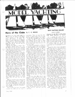 CAAA AeA NAdAQAQaga 8 Y \ lly “li os Z RR. WS “Um Yy VldsddidddddaWy S CMLL Y No. 4. THE vs ZY TEL epaeccccccclaUsd N MMMM LLL ba ie dd <7 %y%y y Wy 7 Za Zl WLLL Gyy LSE STLE rN SSNS WSS SSS SS ae INCORPORATING Vol. XII, SSS. y yA G WUMMIUMILLLEEEE G MO MEN MODEL YACHTSMAN Sevenpence JULY, 1939. 1 “TFIT 6”—A. COCKMAN Photo: J. Vines After the New English Steam Record of 44.6 m.p.h. MARINE MODELS PUBLICATIONS LTD., Dili, FETTER LANE, LONDON EvGe BRITISH “A” Class CHAMPIONSHIP Model Yachting Association AND INTERNATIONAL RACE, FLEETWOOD, ‘“‘A”’ Class British & International Championships, Fleetwood. 1939. July 24th—August 2nd (inclusive). JULY 24th—29th, inc. Selection Trials and British “A” Class Owners/Skippers and Supporters are respectfully reminded that the M.Y.A. “A” Class Regatta Committee have made an appeal for donations to the Regatta Fund. Championship. JULY 30th. Practice Race—Challengers v. British Boats. If you have failed to send a donation, please do so at once. Skippers and Mates from five countries are to be the guests of the British Model Yachtsmen at Fleetwood for the International Race. Send your cheque or postal-order JULY 31st, AUGUST Ist and 2nd. International Monthly Cup. Race — The Yachting 12-metre Championship, Gourock. 0 Victor F. Wade, Esq., Hon. ‘Treasurer, Westminster Bank Limited, Blackpool. AUGUST 19th, at 11 a.m. (Not as printed in Fixture List). Regattas cost money, are you willing to help financially ? Broadhurst, St. Mary’s Lane, Cranham, Wm. M. CARPENTER, Upminster, Essex. NEW MODEL BOAT HULLS WHITE HEATHER ~ y Hon. Regatta Secretary. John H. Yorston, Hon. Secretary. Racing Model Yachts J. ALEXANDER & SONS 26, Victoria Parade, Ashton, Preston, Lancs. Expert Model Yacht Builders Three-quarter view, showing the smart stem and design of the three hull types. A (30 years’ experience) FITTINGS SPECIALISTS FINE SERIES OF HAND CARVED HULLS. Our experience has satisfied us that the hand carved hull is the best in the long run, and this range in two qualities, is, we feel, the best produced at the money. * Alexalight ’’? Metal Spars. Practical Sail Makers. Type !—Destroyer Hull—raised fore-castle type, from 24 in. long to 39 in. Accessories. Prices from IIs. 6d. to 35s. Type 2—Racing Motor Boat Hull, from 18 in. Prices from 5s. 6d. to 26s. 6d. Type 3—Liner Hull, 30 in. long. to 39 in. Send Stamp for Lists Price 24s. Racing Model Yachts Other interesting Ship Model Accessories are described in Bassett-Lowke New Ship Model Catalogue - S.5 6d. post free. WHITE HEATHER BASSETT-LOWKE, LTD. NORTHAMPTON sccscsesier: 28 corporation sires When repluing to Power Boat Hulls. Advertisers TRADE SUPPLIED please mention MARINE MODELS. .) N Ny Nj INCO PORATING THE MODEL YACHTSMAN Vol. XII, No. 4 Published on the Seventh of each Month July, 1939 EDITORIAL A ND so we come to the end of our short term of office as Editor of MARINE Mopbe.s. It has been a pleasant four months making closer contact with many whom we already knew by name through these pages. A very big spot of praise and sincere thanks must go to those regular contributors who keep these pages and the sport generally, alive. We ask them one and all to accept our thanks through these columns in lieu of the personal letter which has been quite impossible these last few months. It may seem strange, but in point of fact your humble Assistant Editor has been abroad very nearly as much as your regular Editor. A few days at home, i.e., evenings, after office hours, is not a great deal of time to devote to shaping up a Magazine of this importance. Our powerboat readers are well catered for in this number, as, apart from the two technical articles by Mr. J. Vines and Mr. Kenneth G. Williams, we are including the first of this season’s reports and illustrations. The photograph of Mr. Cockman with his “ Ifit 6,” taken by our own Mr. Vines, takes pride of place this month. A worthy record of a splendid effort. Our readers are also asked to note and contribute to the fund being raised by the Hon. Sec. of the M.Y.A. to meet the expenses of sending representatives from this country over to the States to take part in the Robertson Cup Regatta, being held very shortly in Detroit. In the past we have been able to welcome many model yachtsmen from abroad. We are now being given the chance of sending our men to represent this country by way of a change. Don’t let the side down, chaps. Don’t let the side down. It was with great pleasure that we learned of the success of the 10-rater regatta at Eastbourne. Everyone who is able to attend came back with glowing reports of the success and splendid way in which the Eastbourne authorities arranged the pleasures and hospitalities for the local and visiting model yachtsmen. In the past, model yachting has been looked upon as a Cinderella sport, if a sport at all. Now we have not unimportant seaside towns relying on at least one big regatta per year as part of their season’s attractions, and if they do not get the assignment they have something to say about it. It looks good to us. Anyway, Eastbourne has a clear idea of what is going to happen and seems determined to get er share of it. Goed for you, Eastbourne. Before finally packing up, there is one small point we should like to clear up. In a round about way we have been told that Club News is subject to not a little favouritism and that certain clubs get long reports always inserted, and others get the blue pencil, if printed at all. The truth is that, during our tenure of office, all reports have been set up verbatim and not a word deleted except an, occasional line or paragraph to fit the page. Of course, the blue pencil has been used when bad taste has reared its head. And so fer the present I leave you. 82 MARINE M.P.A. MODELS INTERNATIONAL REGATTA Another successful International over: this time with the welcome face of M. Suzor among the competitors, who took the cha