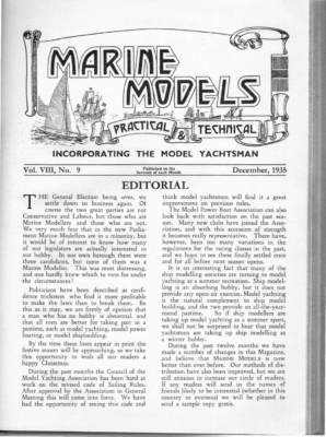 Vol. VII, No. Published on the Seventh of each Month 10 BALANCING A YACHT January, 1936 DESIGN ANON. the hull itself must be properly proportioned and balanced. _In the present article we are only dealing with the latter question, but its importance cannot be too strongly stressed, as though most other faults are curable, bad balance is not. As far as a model is concerned, the unfortunate owner of an unbalanced boat is strongly advised to scrap her and build again from a better design. This sounds uncommonly drastic, but will save much annoyance and disappointment in the long run. There are several systems of yacht designing, but most of these are geometrical methods of drawing the lines, and though some of them automatically produce a balanced yacht, they cannot be considered as systems of balancing a hull, as the perfect system of balance must be elastic and capable of being applied to a hull of any type, and indicate whether it aie _—s= Sa pe os sd The first essential of a balanced hull is that the fore-and-aft position of the centre of buoyancy must not alter as the vessel heels. Every floating body displaces a_ bulk of water that has a weight equal to its own weight. Thus a _ yacht with a deadweight of 5 tons displaces 5 tons of water. If an additional 4 ton of ballast is shipped, her deadweight is increased to 54 tons and she sinks lower in the water until the Te pas a is in balance, or where and how it needs cor- rection. die Uh ed Ase 2 Bo Model and Full-scale Yachtsmen are fond of talking about “ Balance” in yacht design, but when one tries to get a definition of balance, one is liable to get a number of different and incomprehensible answers. The Model Yachtsman usually implies that a boat is easy to handle and sails straight, and the Full-Scale Yachtsman that a yacht is light on the helm and easy to steer. In model yachts it can be assumed that every consistently successful yacht is well balanced, but it does not follow that every wellbalanced boat will be consistently successful, as to be successful a model must sail fast as well as straight. In full-scale yachts a clever crew can sometimes do wonders with an unbalanced boat. This is particularly so in small craft, where the weight of the crew forms an important part of the vessel’s ballast. Yet even here, all else being equal, the well-balanced boat must ultimately prove the better. Actually there are a number of different factors that must all be correct before a boat gives her best performance. The proportion of headsail to aftersail must be correct, and the whole sail-plan properly disposed in relation to the lateral plane and centre of buoyancy of the hull. The lateral plane itself must be appropriate to the vessel in length and profile, and this, again, has a direct bearing on the shape and proportions of the sail-plan. Finally, — oS eee ae Es 5 RL AT Bk alee ET gs PE @ 262 MARINE volume of water displaced is 54 tons in weight. In order that a yacht may float at her designed LWL the designer calculates the amount of water displaced and its weight, which gives the weight which the yacht must have for the line of flotation to be correct. If one considers a vessel floating, it is obvious that the two forces of gravity and buoyancy are acting on the hull. Gravity is a force tending to pull the vessel downward, and in the case of the vessel mentioned above its downpull is 5 tons (i.e., the weight of the vessel). Buoyancy is a force supporting the vessel and can be considered as an upthrust equal to the weight of the water displaced (i.e., 5 tons). The down-pull of gravity can be considered as being concentrated in the centre of gravity and the upthrust of buoyancy as being concentrated in the centre of buoyancy. Now it is obvious that when the vessel is on an even keel both the C.G. and C.B. must fall on the centre line of the hull. This is shown in Fig. 1, which represents the midship section of a shal- low draft cruising yacht. The same yacht is represented heeled almost to the gunwale in Fig. 2. The down-pull of gravity is shown by the arrow through the C.G. and the upthrust of buoyancy by the arrow through the C.B. It will be seen that the C.B. has moved out to leeward owing to the immersion of a portion of the topsides on the leeward side whilst a part of the underbody on the windward side has been lifted out. It is obvious that both the forces of gravity and buoyancy are thus acting in concert to right the vessel. In fact she only remains heeled because the force of the wind in the sails is equal to the righting moment of the hull. MODELS The tendency of the C.G. is to place itself in the same vertical plane as the C.B. This will always be the case so long as the C.G, remains below the C.B., but, as will be seen later, it is possible for a vessel to have her C.G. above the C.B. and still be in stable ” equilibrium. A vessel is said to be in stable equilibrium so long as she tends to right herself, but when she has a tendency to capsize, her equilibrium is said to be “ unstable.” In Fig. 2 the centre line and original LWL are shown by broken lines. The portion of the topside immersed to leeward is known as the “in-wedge ” and the part of the underbody lifted out to windward as the “ outwedge.” Obviously the in-wedge is greater than the out-wedge, and as the yacht has not altered her weight by heeling, she must rise in the water until the wedges are the same size. She accordingly assumes the new waterline shown —-—-—-— In actual practice she does not rise to any appreciable extent, as the down-thrust of the sails counteracts the rising tendency, but for theoretical purposes it is often assumed that she does. Another little point from Figs. 1 and 2 is apparent. When the vessel is upright, the C.G. and C.B. are both on the centreline of the yacht, and as there is no tendency for her to change her trim, there is no righting moment. This applies when the sails are exerting no pressure but as t