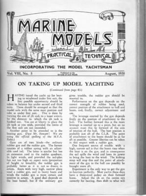 7 he ol WS Hata aevee Vol. VIII, No. 6 Published on the Seventh of each Month EDITORIAL HIS year’s International Races at Fleetwood, which are reported at length elsewhere in this issue, provide much food for thought. In recent years considerable advance has been made in the design of model yachts, in their sails and gear, and in the standard of handling generally throughout the country. We have, however, accepted certain things as facts, but this year many of our ideas have been upset. Never before has the International event been won by a full-keel model, nor has a model fitted with Vane steering gear ever been successful in any important event in this country. Yet Mr. Berge has won the International Cup at his first attempt with a fullkeeler fitted with Vane gear. Is it possible that in the Vane gear lies the secret of making full-keel models perform as well as fin-and-skeg? Is the Braine gear more suitable for fin-and-skeg while the full-keel calls for Vane steering? These are questions which the model yachtsman will ask himself, and next year we are certain to see many boats with full-keels and Vane steering. In our issue of October, 1932, we published an article giving full particulars of this gear. Again it has always been assumed that models should sail to windward without helm. Exponents of the Vane gear use helm on the wind, and in full-scale practice every yacht carries a little helm under these conditions. Moreover, many yachtsmen assert that while a large angle of helm is retarding in effect, a small angle (say, 5°) is no detriment. Which is correct? And how should our yachts be balanced to obtain the best effect? We think it is amply proven that the hull itself must be perfectly balanced. Several systems of balancing a hull exist, of which the M/C shelf system and the Volumetric method (see The Model Yachtsman, Vol. 1, No. 3) are perhaps the best known. There are also several systems of drafting a hull that produce a boat that will balance by the above or any other methods. That leaves us to determine some means of matching the sails-to the hull. The theory of “lead ” between C.E. and C.L.R. is exploded, as it has been proved that the centre of effort is not the effective centre of the sailplan, any more than the C.L.R. is the effective centre of lateral pressure of water against the leeward side of the hull. Yet what determines the performance of a boat in this respect is not so much the position of these two centres in relation to each other as their respective positions with regard to the axis of the boat. The fore-and-aft position of this pivotal point can be considered as being the calculated C.B. of the vessel. As the C.G. automatically falls in the same fore-and-aft position, we have at least one known position to go on. ey Osal bet rs i ree oe ae epee 134 MARINE Turning to other matters arising from this year’s International Races, we draw attention to the conduct of H.M. Customs at Southampton. When M. Boussy, the French representative, arrived at Southampton en route for Fleetwood, his yacht was impounded and a duty of £5 demanded. He was kept hanging about for two whole days before matters were settled. Ultimately the duty demanded (£5) was paid and M. Boussy was informed that it would not be recoverable when he took his boat home again. A foreigner can come to Britain to play in a golf or tennis tournament without being treated in this intolerable fashion. It is true that a model yacht is more valuable than a bag of golf clubs or a tennis racket, yet this discrimination against model yachtsmen should not exist. Even if some security is considered necessary by the Customs, why should it not be recoverable on re-export as in the case of deposit on cars belonging to visitors from abroad? What it amounts to, is that M. Boussy was fined £5 for bringing his boat to compete in a race in Britain. We ask, what is the practice with regard to 12 sq. metre sharpies sailing in international events? Do they pay a heavy nonrecoverable duty? These little yachts are imported by steamer, as was M. Boussy’s model, and the case is on all-fours, except that the model yachtsman received very different treatment. The M.Y.A. Regatta Committee communicated with the Customs at the various ports beforehand. At Hull, Harwich and Liverpool, the foreign competitors were treated with every consideration and the necessary facilities for free entry extended. At Southampton alone was this difficulty experienced. The matter must not be allowed to rest, but demands official investigation. There is at least one Member of Parliament who is an active model yachtsman, though no doubt other members of our legislature are interested in the sport. May we ask this gentleman to raise the question in the House of Commons? Our tourist trade is most important to the country, and innocent visitors, even if they are model yachtsmen, must not be subject to the whims of minor officials. Again, our railways discriminate against The cricketer can take ‘ model yachtsmen. MODELS his bag with him without payment, but the model yachtsman must pay extra for his yacht unless he takes her in the carriage with him, a proceeding decidedly unfair to his fellow travellers in a crowded trains! And when he takes a special ticket for his boat, what does he get? A perambulator ticket! Model yachtingis a growing sport. Sailing lakes form part of the amenities of up-to-date resorts, and soon every borough will have its model yachting lake as well as its tennis courts, bowling greens and swimming pool. It is, therefore, time that these restrictions are abolished and model yachting receives as good treatment as other sports. In conclusion, may we write a few lines about ourselves? Our present issue, the 1935 September Special Number of MAriINE MODELS, is bigger and, we hope, better than any previous number. Year by year the Magazine has grown, and the present number is four times the size of our first issue, while ord