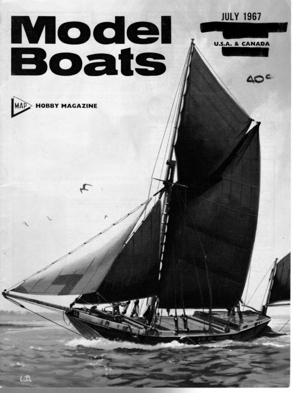 © —- h U.S.A. & CANADA Boats A. HOBBY MAGAZINE THE ONLY FULLY APPROVED MODEL | OF SIR FRANCIS CHICHESTERS GIPSY MOTH IV A 26} in. Francis semi-scale Chichester, working the model gallant of lone the famous navigator, boat fought in which Sir beat the plastic Hull and treacherous oceans of the world. Hobbies easy-to-assemble Kit contains: pre-cut parts, moulded and Cockpit, ready cut Sails, basic Fittings and cast Keel. Complete with log . features from ‘““THE SUNDAY TIMES’’. Designed with a view to simple adaptation to Radio Control. Catalogue No. 2MB 230 From Kit price 97/6 carriage 6/0 your nearest Hobbies Limited Shop or stockist, or direct by post. EXCLUSIVE WORLD RIGHTS FOR PRODUCTION 2193 DEREHAM Comprehensive Stocks of Model Boat Kits and RUS PLA N S SH | ° Fittings FOR Mersey Marine and RipMax Fittings O.S. renee my Trident Trawler LE A UNDERHILT AM By HAROLD Ev Goce DENA.M.I.E.S. ice From leading dealers or direct from ‘ oo arabia 23/7 Sea Scout 179/40 | cc. Viking £3/11/2 Hei i 120/2 34” Crash Tender eunniy a ay ALL . dwes ater coole yf 40/2 alas ea Hunter 75/6 ea/2/10 £8 RUSS, 101 BATTERSEA RISE, LONDON, S.W.11 BASSETT-LOWKE LTD. ST. Servos Sea Urchin 11/2 can the executors ILLUSTRATED LIST OF 35 POWER CRAFT 1/- KINGSWELL Unimite Aquamite Servos £7/11/9 each BS Ouse ee Lg acetal eSiO7! Titan Tug ILLUSTRATED LIST OF 70 SAILING SHIP DESIGNS 2/10 ourtesy of RADIO CONTROL £17 McGregor — all ce in stock Crystal Tx THE ENTIRE SAILING SHIP & POWER CRAFT Y Pixie Ariel 6-channel £40/3/9 WORK MODEL NORTHAMPTON Tel. BAT 6319 TAYCOL HIGH POWER — HIGH EFFICIENCY ELECTRIC BOAT MOTORS Powers range from 6 to 64 milli. H.P. Consumption from | to 5} amps. Ask your retailer for Price installation of the most List with complete data for suitable motor for your boat. A TAYCOL LIMITED 74 COVENA ROAD, SOUTHBOURNE, BOURNEMOUTH KINDLY MENTION 36” RADIO CONTROLLED “DOUBLE SPECIAL”. “MODEL BOATS” VERON MARLIN — TAYCOL 12 Venner Cells, Taplin 2} x 24 Prop. —_—T#7<2!_ motors ca be revarsee by. single spate, c/o Switch, as WHEN REPLYING TO ADVERTISEMENTS es MODEL BOATS HIGH OR LOW PRISMATIC COEFFICIENT? A five per cent increase makes a surprising difference in hull shape, as shown by these two new Marblehead designs By S. Witty (THE term may sound a little technical but the basic * idea is very straightforward. Imagine a block of wood, the same waterline length as the hull in question and of similar cross section throughout as the shape of the submerged mid-section of the hull proper. This constitutes the prism, the coefficient being the proportion of this taken up by the under- water canoe-body. A relatively full ended yacht would tend to fill a larger part of this prism and so has a higher coeff. Taking the prism as unity a normal shape of hull usually fills 0.5 to 0.6 of this. The finer ended yacht with the low coeff. will tend to be more easily driven over the lower speed range than the hull with a high P.C. due to phenomena connected with wave formations. This is a_ vast over-simplification of the problem as there are many factors which affect resistance, both heeled and upright, and indeed one could fill a book on this subject alone. Full size powered ships can, to a large extent, be designed to the particular coeff. which gives minimum resistance over the particular speed range required. Low coefficient or conventional hull is typified by ‘Typhoon’? below; ‘Sprint’? has a higher coeff. and is altogether flatter and fuller-ended, a remarkably different appearance considering the similarity of the hull midship cross-sections. Full size copies of either drawing are available from Model Maker Plans Service, 13-35 Bridge Street, Hemel Hempstead, Herts., price 6/6 inc. post. ‘“‘Typhoon’’ reference is MM.932, ‘Sprint’? MM.931. Note that in the drawingsthe body plan and fin are shown full size but sheer and waterlines are half size. ——— TYPHOON My) s-witty ii: Sin 6/- | THE MODEL MAKER PLANS SERVICE 1 | ee “Ne -\ Ne \ Ne 280 + JULY 1967 ] | —— | | MARBLEHEAD LENGTH MAX 50-25" SAIL AREA 798 so" DSPLACEMENT «21.5 LBS SECTIONS 4 e7s* 50/800 th || Ir Yachts, on the other hand, have no source of power parison being similar in beam, draught and displacement. The respective prismatic coeffs are 0.536 for the conventional hull and 0.586 for the other, so it will be seen that quite a small difference in this figure means a considerable change in hull shape. Bulb keel other than the wind and so hull shapes must be found which give a good performance over a whole range of conditions of wind and water, varying angles of heel etc. boats are now well established, and being second generation types, the two hulls shown can be considered well balanced in every respect. In fact I feel that the appendage configuration shown is more or Model yachts are required to perform over an even wider speed range, proportional to size, for the ability of these small displacement hulls to plane can be a considerable advantage. It has been found that a hull with a fairly high P.C. and relatively full ends allows flatter, easier lines around the midsection resulting in improved planing ability. As will be clear, this must inevitably be at the cost of light weather performance to some extent. The pros and cons of both types are many less standard for a moderate draught boat. Indeed, for the past few years I have realised it to be point- less to design other than bulb-keel boats in either 1OR or M, and feel that soon, anything else will not be regarded as top flight boats by the leading skippers. and varied and by no means fully resolved. In the recent M Championships both types did well, and though the first two were high P.C. boats, my impression was that on the whole the lower P.C. designs were at an advantage, being able to sit up more, allowing the stem to ride over the broken water. I believe that in future I shall concentrate on the latter as being less restr