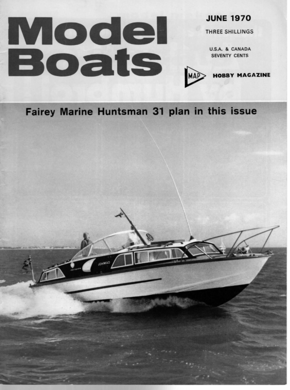 THREE SHILLINGS IWI@ cael = © at & JUNE 1970 foe U.S.A. & CANADA Be HOBBY MAGAZINE Fairey Marine Huntsman rot plan in e Hs er ~ JUNE 1970 ACING MODEL YACHT CONSTRUCTION We believe that this extended series will prove to be among the most valuable yachting material published for many years BY C. R. GRIFFIN PART ONE OME years ago when I started my first model — & ee ae: yacht, I was astonished to find that there was a distinct lack of up-to-date information published on how to build these boats. Apart from ‘Boat Modelling’ (6/- a copy, worth every penny of it) and Daniels & Tucker’s ‘Model Sailing Yachts’, there was almost nothing in print to enable a novice to build a boat to the standards required in the model yacht racing world. Only by constant and persistent questioning of others and, more often than not, the trial and error method, could one arrive at a_ satisfactory answer to the many problems that beset the erstwhile builder. To try to remedy this situation I have decided to record some methods of construction. It is not implied that these methods are the only ways to build a boat, nor is it advocated that they are the best. All that is intended is that they will enable a be- ginner to make the decision as to how he will build a particular design of boat, bearing in mind his own capabilities and facilities. These notes are primarily intended for the novice builder and the writer in no way decries the building of boats for pleasure sailing. However, it cannot be over-emphasised that there is a distinct difference in sailing a model boat for the pure love of sailing and building a model racing yacht intended to be used in competition against other model racing yachts. The former is a delightful and rewarding hobby but the latter, whilst still giving both reward and pleasure, demands more stringent attention to certain factors involved in the building process, e.g. weight, robustness of fittings, and good design of both hull and sailplan. The reader is, therefore, asked to decide which of these two aspects of model yachting he prefers and to interpret the following articles in that light. Alternatively it would not be ill advice for him to read the articles and then make the decision. There are four main classes of racing model yachts, viz. ‘A’ Class, 10 Rater, Marblehead 50/800 and 36R. Select one of these classes. Preferably contact the nearest model yacht club to enable you to select a class of boat that is sailed locally. Should you prefer to go it alone, bear in mind one needs competition to test the boat. Having decided what class of boat you want to build and studied the rules concerning that class, then select a design. To a large extent the chosen design dictates the construction method, especially if one chooses a design of very recent publication. In the following articles the methods described will be those used to build model yachts to the Marblehead 50/800 rule, although there is no reason, in my opinion, why these methods could not be used for the other classes. Heading picture shows one of the author’s Marbleheads and, left, the boat in frame on the building board, ready to begin planking 235 Basically the construction methods may be divided into four main classes, viz., 1. Carved hulls—‘bread and butter’ laminations. 2. Coated hulls —final hull or for moulding. 3. ee planked hulls—round bilge and hard |Woterline _ SECTION SPACINGS chine. 4. Fibre glass hull forms— bought and built up. 80W nex | ——__INWALE Mast + 7 Before elaborating upon the different methods, it would be as well at this point to make some general remarks which apply to any of the methods later described. In the first place, the type of model envisaged does require accuracy of construction. As accuracy and speed are not necessarily stablemates, one has to consider the amount of time one will be able to devote to building and consequently what method to adopt. Whilst on the matter of accuracy, it cannot be over-emphasised that in order to obtain a true and faithful reproduction of the design, all drawing of datum lines and tracing of sections must be done as accurately as possible. Secondly, use only good quality materials; cheapness or second class materials do not help when one is building boats. Thirdly, and probably the most important, do not put tool to wood until one has thoroughly studied the plans of the model and decided how you are BACKBONE TRANSOM BLOCK r. RUDDER Upright FIG 1a FIN FOR SLIDING HATCH AND BACKBONE MAST MOUNTED -.< _ SLOT FOR BACKBONE SHADOW SECTION 4 ALTERNATIVE FIN FOR BUILT-IN HAND GRIP AND DECK MOUNTED MAST NOTCHES _ FOR INWALES SHADOW MOUNT BUILDING BOARD —— k 5 LEG if reqd ALLOWANCE si FOR es = i+ INWALE Sy | \ 1 \ Bees “cas aaa ay x aee 3 XY silly, but consider how one intends to mount the mast, i.e. slot in deck or deck plate, what kind of vane gear and where one is going to put it. Sliding hatch or hand grip, etc. All these matters should be decided and sketched into the plans before one starts building. This not only saves time in the actual building but may prevent the necessity of redesigning a part of the boat because that particular point had not been thought of at an earlier stage in the construction. Lil tee piece | FIG 2 BODY PLAN — | PLANKING | going to build every part of the boat. It may sound J i =f ‘ig YJ man eee, BAP BACKBONE iy ate fig ne ee ee -———] ee Hull Type I - Carved Alternative layers of wood and glue, ‘bread and butter laminations on the waterlines or the buttock lines. This type of construction is adequately dealt with in either of the two books mentioned previously. There is little one can add either to up-date the information or. improve upon the methods described. Personally I believe that carving a hull from a ‘block’ does not suit the modern racing model yacht. In these days when the trend is towards lighter displacement boats, this method tends to give too heavy a hull. The method d