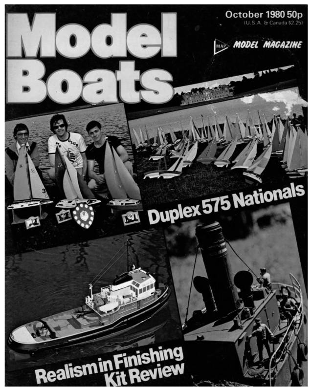 _ October 1980 50p (U.S.A. & Canada $2.25) uap> MODEL MAGAZINE Our MYA Correspondent reports on events at home > and abroad SRS GRAYS SSASBANN|S AES S | S S N x N SS CA SRA SSF RASA AA SS SON AAS SS SSS Left, Tim Fuller, top of the British skippers in the IMYRU World Champs RM class with his carbon fibre 247. Right, Wally Jones launches \pi Tombi at the A Champs on his way to a popular win. 6. Manny Costa USA USA 7. Gerry Trahan USA 8. John Hemmalin USA 9. Carter Cain Canada 10. Jeff May Racing seemed to be somewhat different from the customary way of doing things. For exam- HE IMYRU World R/C Championships in Ottawa have only just finished as copy date for this issue approaches, but Dave Hollom was kind enough to pass on results which he’d tele- phoned to obtain, and a couple of comments have already fed back along the grapevine. A report must wait for fuller information, but results were: RM 1. Blair Van Koughett 2. Terry Allen 3. Francois Foussard 4. Tadashi Kato 5. Charles Black 6. Ned Wagner 7. Tim Fuller 8. Squire Kay 9. Chris Dicks 10. Allan Gardner 11. Barry Jackson 12. Richie Wagner R10R Canada USA France Japan USA USA England England England Canada England USA 1. Squire Kay 2. Terry Allen 3. Barry Jackson 4. Allan Fish 5. John Arnen 6. Bob Sterne 7. Tetsuo Takahashi 8. Masami Umebayahi 9. Rich Matt 10. Ron Gould England USA England Australia USA Canada Japan Japan USA USA John Cleave Henry Morris George Wilkins Chris Jensen Don Biggins England USA Canada USA USA EC 12M 1. 2. 3. 4. 5. 622 ple, the RM entry was divided into fleets and each boat only sailed in its own fleet, not against any boats from other sections, except for the 12 top yachts, which formed the ‘Gold Fleet’ (listed above) and sailed a separate race on the final day (part of a day, actually) which decided the Championship. Presumably the same system was used for the other two classes. Sailing was also much slower than the Europeans are used to, one heat per half hour being the fastest pace achieved. However, more details when more of the story is known. A Class Championships Gosport saw a very successful weeks sailing, with very reasonable weather, although the wind never quite managed to blow straight up and down the lake; most of the time it stayed south-westerly, over the corner, where unfortunately a large temporary mound of soil perhaps 25ft high created some interesting eddies. There were 33 boats, 15 of them Lo/lipops, though by Tuesday evening the leading boat was Keith Armour’s Stollery-designed Daddy Long Pig, which therefore represented England in the International sailed on Wednesday morning. Five countries were represented (the others were Denmark, France, Holland and Scotland) and the result was in the balance until the last board, when the English boat clinched victory from the Dutch. Somewhat surprisingly, Keith then dropped out of contention, leaving Lo//ipops to take four of the top six places. Popular winner Wally Jones received a standing ovation at the prizegiving; he first raced in the Championships 47 years ago, was 2nd in 1934 and 1936 and several times since, won once with Aragorn (1967, from memory) and, in Model Boats in 1975, confessed the ambition of winning another championship before his legs gave out! On this occasion the legs lasted but veteran mate Bill Poole had a spot of bother, though recovered now, we hope. Runner-up was the Eric Carter/Clive Colsell Lollipop Gunslinger, 3rd Ken Butler with an elegant Sykes lightweight (39lb), 4th Dick Sea- ger sailing Wocanido, a Lollipop, 5th Roy Gardner, another Lo//ipop and 6th G. Bantock with his o.d. Please note that this listing is based on a conversation and not the official results list. Neither Roger Stollery nor Alex Austin, whose Lollipops were 1st and 3rd in 1978 and 1979, were able to enter this year, and Chris Dicks, 2nd Revolution, with ner in those years and twice win was in Ottawa. Full report in next issue. Down Under A mention in passing by Mark Rundell of the Wellington MYC in New Zealand illustrated some of the difficulties facing further-flung enthusiasts: the cost of sending an entrant to Ottawa would have been in excess of £1,250, which, as Mark says, makes international competiton expensive. The Wellington club, with 26 members, is into RMs with Genies, 247s and Outlaws plus two NZ designs, Frenzy and Zeta; the current NZ champion sails a Frenzy. Any photos or details of these boats? There is always interest in what other enthusiasts have developed, and we can all learn something from any boat. Model Boats Magazine Trophy, August 3rd This trophy was presented by this magazine to the New Forest RCMYC, for RM racing, and this year was sailed for at Woodley, organised by New Forest and Danson clubs, with a little help from Norman and Margaret Curtis, whose house just happens to back on to the Woodley lake! There were 21 entrants from 5 clubs; the day was mostly cloudy with a stiff breeze which tended to be split by a clump of high trees on the far side, giving changes of direction and a sheltered patch which at times saw one boat crawling while only feet away another was showing signs of planing. Sailing was brisk, with four seven-boat races an hour achieved without any pressure, and close, with the finishing order only settled in the last heat. Top ten were: 1. 2. Tim Fuller Tony Owens New Forest Danson 247 Trapper 2 Model Boats 3. Chris Eagle Chelmsford Trapper 4 4. 5. Vic Cooney Alan Risby Woodley Woodley Trapper 3 Bloodaxe New Forest OD 6.=Ray Belding 9. 10. Norman Curtis Woodley Trapper 4 Rob Owens Jack Richards Ted Croxon Danson Danson Woodley Trapper 4 Trapper 2 Trapper 3 League points earned were Woodley 43, Dan- son 39, New Forest 32, Chelmsford 17 and Chiltern 3. Swing Rig Roger Stollery’s swing rig, in which the main boom encircles the mast and extends forward with the jib boom pivoted on it, has been mentioned and illustrated (e.g. June issue) and has been seen in action by a good few model yachts