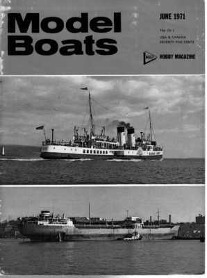 MAY 1971 15p (3/-) U.S.A. & CANADA SEVENTY-FIVE CENTS HOBBY MAGAZINE ee) A HLH ——_ —_— — Racing Model Yacht Construction TEMPLATE DECKLINE Part Eleven me Erection of mast, horses, rudder and deck 22 GAUGE STAINLESS STEEL FIG. By C. R. Griffin fittings, spinnaker boom, etc. 79 RAKE OF MAST Ot THE ERECTION OF THE MAST. It has been said previously that the designer of a model yacht can only estimate the position of the mast on the hull, and the exact position is found by a tuning-up process. However, it is necessary to have a starting point, and therefore the mast slide or the deck mounted mast step is placed centrally over the designer’s estimated mast position. Measure from the plans the two positions of the jib stay, i.e. the high and low aspect, and site the jib fitting so that it can be moved to either of the positions, preferably with additional movement fore and aft. Check that the jib boom will not foul the mast. Decide which sailplan is to be rigged and put the jib fitting in the appropriate position. Rig the mast to suit this sailplan and, from the plans, calculate the angle that the mast should make with the deck. If not indicated, use an angle of about 874° to the waterline with the mast raked slightly aft; note that the angle to the deck will need to be calculated from the plan, see fig. 79. It is useful to make a plywood template of this angle so that it can be repeated at will. Fit the mast into the mast slide or onto the mast step, rig the jib cn and adjust until the mast is at the correct degree of rake. If the chainplates were not built in with the hull, fit these now. Two types of chainplate are illustrated in fig. 80 and 80A; the type shown in fig. 80 is constructed from 16 gauge brass or 20 gauge stainless steel sheet. Cut the chainplate 3” in length and 3” wide, and drill 4” holes at 3” intervals to accept the shroud turnbuckles. Silver solder three feet, 3” long and 5/16” wide, to the drilled strip. This fitting is secured by screws through the deck into the inwale. Fig. 80A shows a chainplate made from 22 gauge stainless steel and is fastened by screws into the inwales both downwards and sideways. “40 2″ Troe RIVET 22 GAUGE STAINLESS ao 2″ | e | 1/16″ COPPER we 4 a el 22 GAUGE STAINLESS STEEL 3 1/4″ DIA, HOLE 2″ DIA. 4″ THICK PLASTIC OR TUFNOL COLLAR v2″ U5 4” DIA, POST || rT FIG. 82A._ “TRIANGLE FOR OPERATING MOVING CARRIAGE VANE POP RIVET FIG. 828. ‘TRIANGLE’ 186 Measure the distance from the hounds to the chainplates and secure 20 gauge stainless steel wire of the appropriate length to the eyes on the mast band to form the shrouds. Alternatively, if no mast band is used, make hooks from 16 gauge stainless steel wire, secure the shroud wire to the hooks and insert the hooks in appropriate holes in the mast. It is advisable to use turnbuckles to connect the shrouds to the chainplates prior to and during the tuning-up process. This allows the mast position and rake to be altered more easily. Open the turnbuckle to the mid-position and hook on to the chainplate at a point approximately 1” behind the mast position. Measure from the mast band eye (or hook eye) to the eye of the turnbuckle on both sides of the hull, calculate the mean distance, measure off both shroud wires and bend over. Secure the lower end of the shroud wire to the turnbuckle then check that the mast is vertical when viewed from the bow. Ensure that the rake of the mast has not been altered during the operation. Tighten the turnbuckles so that the shrouds are reasonably taut but do not overtighten as this will bend or distort the mast between the hounds and the deck. THE JIB HORSE is fitted to provide an anchorage point for the jib boom sheet and, depending on the type of horse used, allows the jib boom to move about 10° either side of the central axis of the hull. Any further movement of the boom in a horizontal plane is controlled by the jib sheet. Fig. 81A illustrates the traditional jib horse and traveller and should not exceed 3” in length. Ideally, stainless steel should be used throughout but a good compromise would be partial construction in brass, preferably with the horse bar of stainless steel. Whatever material is used the bar should be silver soldered into the posts, and similarly the feet should be silver soldered into position. The triangular uprights shown in fig. 81B have advantages over turned posts in that there is less likelihood of the jib sheet becoming entangled and they are simpler to make. If the jib horse is to be on lines similar to that illustrated in fig. 81C, it is essential that two collars are soldered on the horizontal part of the bar to prevent the traveller locking on the corners. The traveller illustrated in fig. 81B requires less intricate bending of 22 gauge brass or stainless steel sheet than the one shown in fig. 81A. Both function in the same way utilizing }” diameter rollers operating on 8BA axles. The stainless steel deck eye shown in fig. 81D replaces the jib horse when synchronous sheeting of the jib and main booms is desired. Fashion the eye and the ring from 16 gauge stainless steel wire, silver soldering the joint in the ring and the loop to the plate. MAY THE MAIN HORSE, if fitted, performs the same function for the main boom as does the jib horse for the jib boom. Except for the extra length of the bar, which is approximately 44” long, there is no difference in construction. Modifications have to be made to the traveller if it is required to operate a moving carriage vane gear; however, this aspect will be dealt with when vane gears OLLERS POST IN BRASS OR S, STEEL FIG. BIA__JIB HORSE AND TRAVELLER y4 ” are Dy \_- 1/8″ DIA. BRASS ROD e FIG. BID ‘JI8 HORSE” DECK EYE SYNCHRONOUS SHEETING e STAINLESSS STEEL RING 4/16″ . ©, DIA. . STAINLES Soa e V5 5/6″ INES (a nih 5/\6″ DIA, BRASS COLLAR . 5 _JIB HORSE FIG, BIC HORSE 81C_1B FIG. shelLo a74″-o| ier ar oe brass or curtain rail and lo