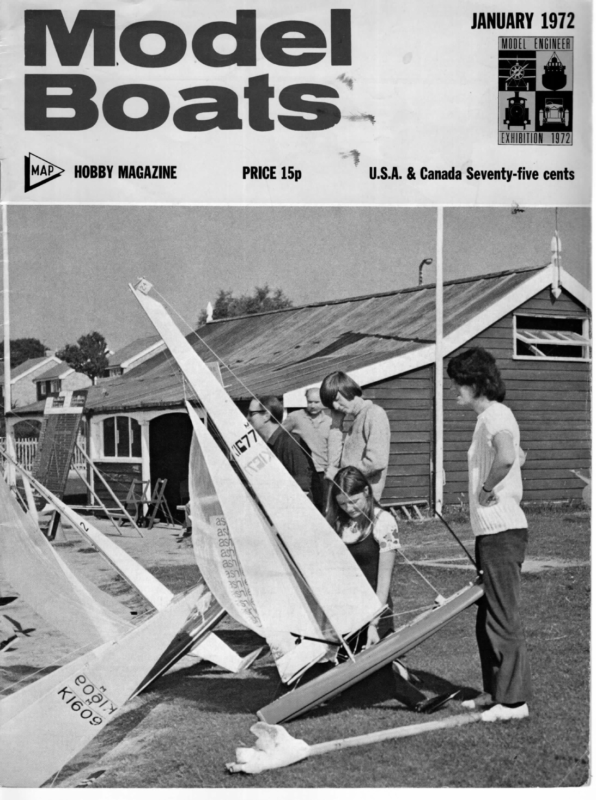 Vviodel HOBBY MAGAZINE U.S A & Canada Seventy-f ive cents Ee, PRICE 15p JANUARY 1972 Pe:“Pp co} af MODEL BOATS STAR-C ‘MODEL BOATS’ NEW 42” ONE-DESIGN R/C YACHT CLASS PART TWO – BUILDING BY VIC SMEED (obviously more if you have to send away to a metal merchant), sO we are somewhere between £10-£11, plus sails and fittings; final prices are awaited on these, but in total the entire boat, less radio, should come out at under £20 and require only a week of evenings to complete. Money can be saved by using scrap lead, ex-aerial tubing for mast and booms, and making one’s own fittings, on the Starlet style. If you wish to make your own sails, two articles showing how have appeared in the last year, so that it would be possible to have the boat on the water, less radio, for about £10, which is pretty moderate for a new FNHE aims of this relatively small class for R/C yachts are to produce (a) a boat satisfying the general opinion of what constitutes a nice-looking model; (b) a conveniently portable model which is still large enough to sail well and not look like a cork out on the water; (c) a relatively low initial cost and a minimum of frills to keep sailing costs low; (d) a model capable of accommodating any reasonable R/C outfit; (e) one capable of being processed by simply putting it on scales and checking the head-tack-clew dimensions of the sails; (f) one which can, if preferred, be sailed by vane steering gear; (g) one which yacht of this size. Some people feel that they can economise still further by using single channel radio. Certainly, by using rudder only and setting the sails at about 40 degrees, the boat can be sailed on any course, but inevitably it is going to sail far less efficiently. Endeavouring to arrange sail setting by quick-blip secondary actuators is possible; one would be best advised to use a four-position two neutral secondary actuator, closing circuits on the two active positions to drive the sheet motor one way or the other, but this is rather gimmicky, and would lose too much time in racing to make the boat competitive. Obviously, superhet radio is necessary to sail races, and interchangeable crystals are desirable so that the chances of avoiding frequency clashes in tournaments are at a maximum. While proportional radio is valuable, reed radio is perfectly acceptable and can be bought second-hand in good condition for, often, the price of new single-channel superhet gear. We will be discussing the installation at a later stage; in the meantime, let’s consider the assembly of the hull. There is a relatively small amount of woodwork to be dealt with, the first stage of which is to cut and fit fashion pieces in the bow and stern. A detail sheet for fitting out is available, and the shapes of the fashion pieces can be seen. They are cut from in. obeche or a similar light but close-grained timber, chamfered to be a reasonable fit, and glued into the hull with epoxy resin or Plastic Padding. It is always advisable when gluing to cured g.r.p. to scratch up the surface with a fragment of hacksaw blade or some similar tool (even coarse glasspaper) to ensure a better key for the adhesive. The size of the fashion pieces is such that 36 in. lengths of spruce or obeche will fit neatly between them, allowing a shade for trimming. These are 3/16in. x in. and are glued inside the top edge of the hull shell, clamping with clothes pegs while the adhesive sets. The hull comes trimmed to the sheer line, but the inwale strips can be used to check that the line is fair and any high spots sanded off flush to the timber after setting. Deck beam positions can now be marked and small involves no special expertise in construction; (h) reasonable performance — good enough to make it interesting to sail. Not necessarily in that order of priority! With regard to (a), this is largely a matter of personal taste. We tend to have rather a jaundiced eye, especially with regard to our own creations, but certainly we feel that this boat is pleasing, having lived with two or three hulls in the office for a spell. At a cost of a few ounces, a scale-type coachhouse and cockpit could be built on for those who prefer semi-scale appearance, and we will sketch a suitable lay-out in a later article. Size-wise, (b), 42 in. l.o.a. is a compromise between a current model yachtsman’s idea of small (about 60 in.) and a newcomer’s idea of big. It has been said by experts that nothing under three feet can be made to sail consistently and well, and although this is arguable, at 42in., 33 in. on the waterline, we are not down to ‘toy boat’ size. Derigged, with a mast length only a bit over four feet, portability, even on a bus, is no problem. Cost is, of course, a relative factor. Radio is inevitably the biggest item; the average power boat without radio but including engine costs £20 or so, and this has proved no bar to popularity. If the cost of a yacht can be kept below this, with most of the work taken out of construction, there can surely be little objection on grounds of price. We have arranged for glass-fibre hulls to be available (they are now) and the price of a hull plus two half fin mouldings is £6.70. Packing and carriage, about which little can be done, costs 80p. The standard ex-stock hull is white, but colours can be produced to order, remembering that this adds a few days to delivery. The mouldings are produced by a firm local to us, Wavecrest Boats, 18 Alexandra Road, Hemel Hempstead, and orders can be sent to them direct. If sent to us, we will simply pass them over. As mentioned last month, the design avoids casting lead, and sufficient sheet lead from a builders’ chant will cost around 75p. Deck ply and other ber, say, another 75p, adhesives the same again. minium tube for mast and booms about mertimAlu45p 18 WRAP ER LEADFOR i HALF FIN PORT 47 ieAlfaBGt W&1BE43Tl2/bsN DE8CKMA“ST,4BIOL SMTARIUiN iOth WRALPED= a | 1|\-} STRU MAIN t= (MPINECUS TE|MPLATE > \| STRUT 