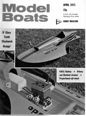 MARCH 1973 Model M.E. Exhibition @ R/€ yacht sheeting @ Steam picket boat =: U.S.A. & Canada Seventy-five cents ¢ Single hatch coasters MODEL BOATS SHEET WINCH Winch drum m FOR R/C YACHTS \ mn Cree, A slightly different approach by T. B. ROSE ‘cere _t Fe CAN Rack and | pinion carries the winding drum and the object in this case was to make it revolve through 15 revolutions and to provide facilities for reversing or stopping at any aaa point within these limits. At the end of the shaft D is a worm, F, which drives a 60-tooth wormwheel, so that when the shaft D has made 15 revolutions, the wormwheel will have revolved a quarter of a turn. This wormwheel is coupled to the commutator B, which causes B to revolve when the shaft D rotates. This causes the brushes attached to B to rotate around the commutator A until they arrive at the insulated slots, which discontinues the supply of current to the motor and stops the winch. If the commutator A is then moved by the servo, the brushes will again make contact with the copper segments, and the motor will start up again in forward or reverse, according to Rotating brushes To servo | the position of the servo. If you have succeeded in following the description so far, you will realise that the brushes will always seek out the insulated strips on the commutator A and then the motor will stop. Because the position of these slots is under the direct control of the servo, it follows that the winch revolutions will automatic- N I became interested in the subject of R/C model yachts, the need for some kind of sheet winch soon became apparent. I looked through back numbers of Model Boats to see if I could find anything suitable, but could not find anything that appealed to me. After thinking about the problem for some time, I hit upon the following solution, which may be of general interest. The idea is so simple that it is difficult to believe that it has not been used before, but I have asked a number of model boat enthusiasts and none of them had seen anything ally be regulated accordingly. When the brushes have reached the insulated strips, the battery is automatically switched off and the winch drum cannot be revolved by pressure from the sail because the worm gear E cannot be driven backwards by the shaft D. This means that the winch control stick on the transmitter can be set at the required position and the operator can then concentrate on rudder operation through the second channel, while the winch gets on with the job and switches itself off when it reaches the desired position. similar. Although the idea is simple, it is not very easy to describe, but perhaps the diagram will help to make it clear. The heart of the system is a commutator, A, which has two longitudinal slots isin. wide which divide the commutator into two segments. These slots were filled in with thin strips of vulcanite, which were carefully filed until they blended smoothly with the curvature of the copper tube which forms the The ratio of reduction between the motor and the winch shaft can be varied to suit the power of the motor without affecting the timing of the rotating brushes on B, which depends on the ratio of the second worm gear F at the end of shaft, i.e. 60:1. It is necessary to determine the length of the sheet to be hauled in between the extremes of running before the wind and sailing close hauled. Once this length has been found, it is easy to calculate the diameter outside of the commutator. This commutator is then mounted so that it can rotate freely on a shaft and it is coupled by means of a crank or rack and pinion to a coupling rod and thence to the arm of the controlling proportional servo. Most proportional servos seem to work through 90°, so that this arrangement will enable the commutator to be turned to any point within an arc of of the winch drum which can take up this length in 15 revolutions. If L is the required length in inches ae D is the os diameter of the drum in inches, 90°, i.e. a quarter of a revolution. Two sets of brushes make contact with this com- then mutator. The first set are coupled to a battery so that the two halves of the commutator are kept at battery 47.1 A few notes on the construction of the various parts may be of interest. The commutators A and B were potential. The second pair of brushes are mounted on a second commutator, B, in such a manner that they are in line with the shaft and make contact with commutator A. These brushes collect current from the commutator A and energise the motor, C, which drives the shaft D through a worm reduction gear, E. This shaft made from 4 in. O.D. copper tube which was secured by Araldite to a vulcanite bush. In the case of B, all that is necessary is to make two slots right through the copper at 180 deg. with a hacksaw to divide the copper into two segments. In the case of A, these slots need to be made 3/16 in. wide and it is advisable to 104 MARCH fill the slots with vulcanite strip and then file up flush with the copper. The brushes were made from phosphor bronze draught excluder strip and were hammered carefully to improve the spring. Existing worm gears could probably be adapted, but I cut my own in the lathe, using a ¢ in. Whitworth tap as a hob. Both wormwheels are 1 in. O.D. I gashed them carefully to 60 divisions to give the tap a start. The blank was then mounted on a ¢ in. dia. vertical shaft secured to the cross slide so that the centre of the blank was ievel with the lathe centres and free to rotate. The } in. Whitworth tap was mounted in the chuck and the blank was gently fed in, causing the blank to rotate until teeth of the required depth were generated. The result was very pleasing and so 1 decided to make a 40-tooth wheel and use it in conjunction with a }+ in. Whitworth screwed rod as a rack and pinion to connect the servo with commutator A. This can be done equally well with a crank and connecting rod, but the worm has the advantage that the setting can be adju
