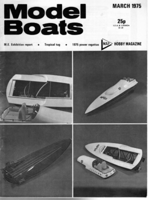 FEBRU ARY 19 75 25p U.S.A. & CAN A $1 +25 DA HOBBY MAGAZINE ill MODEL BOATS Rl =R2 = 1.8 ohm To be fitted where shown Radio Sailing at Poole T. 1. Reece looks back over 1974 and not only describes the club’s activities but includes a Fig. 1. Modification to MR servo lot of useful information for R/C yachtsmen oO’ club activities started long before the sailing season proper, because a crossbow had been fired at the club windows. Although the shutters had been given adequate protection against the odd stones, the crossbow bolts penetrated them and broke many panes of glass and so, apart from the repairs, it was necessary to reinforce the shutters against further vandalism. However, the advantage of a pleasantly furnished clubhouse together with boathouse at the waters edge more than compensates for the inconveniences caused by these delinquents. The unused petrol coupons left or lost at home are a reminder of earlier fears on attendance, but despite the increased fuel prices, we have done quite well, and the main purpose of this write-up is to append the results of our thirteen events throughout the season and to generalise on items of interest. Originally we had fifteen events scheduled, but the first of the season was cancelled as it was mistakenly understood that the water level would be too low. The fifteenth event, the Freeman Cup, was postponed after two abortive attempts to sail in gale force conditions, with a north-easter building up tremendous waves towards the clubhouse. Even then, the first attempt was only because of the arrival of a cameraman from Southern Television, so even though we did not race, we could at least enjoy seeing something of our efforts in a 10 second glimpse on the screen later that afternoon! The first two events were held racing with provisional amendments to the MYA rules but, generally, these changes tended to penalise good sailing and to encourage unfair sailing. By mutual agreement with Gosport MYC, further changes were introduced and these latter rules have been in use all season except for the RA National Championship which of course was sailed strictly to established MYA rules. These current changes allow boats to continue sailing under circumstances where they would have been disqualified under the previous rules, notably after collisions or coming ashore. The award of penalty points in lieu of disqualification is an effective deterrent to rule infringements and a second infringement of the same rule in the same race now leads to disqualification. Overall, these modifications have led to better standards of sailing and more enjoyment of the sport, and basically these latter considerations are the foundation of good yacht racing. During the 1973/74 winter, a new 10-rater design emerged, being the joint effort of Frank Walker and Roger Dehon, and several of these have been raced during the season, with varying degrees of success. With a LWL of 55 in., narrow beam and bulb keel, this design has remarkable acceleration and good planing charac- teristics on a rup. Because of the light weight, though, a drop in wind strength or losing way gives an equally rapid deceleration and, unlike the much heavier RA boats, it cannot be “coasted” round buoys. The one big disadvantage is that they are easily deflected off course by waves and hence they have had more success at Gosport than at Poole, where a fair amount of chop usually prevails. The significant measurements of this new design are overall length 66 in., LWL 55 in., displace72 ment 27 Ib., typical sail area 1360 sq. in. Our Commodore, Jack Gascoigne, has been racing one of these 10 raters all season but for various reasons has been unable to repeat the impeccable performances given in the past with his RA boat Jaquita. However, a season of predominantly rough weather is not the best introduction for a new design and more are being built this coming winter, so we look forward to further trials next year. Up to about two years ago, the majority of RA boats (Q class at the time), were equipped with mainly homemade analogue radio control using variable mark/space ration for proportional rudder control and an increase or decrease in the mean modulating frequency for progressive winch control. The servos were mainly to the designs by Bob Jeffries covered by previous articles. The past season has seen some radical changes with the greater use of digital radio control, including the use of aircraft type servos for direct control of the rudder. In some cases the existing servo travel was geared up or down to provide the required amount of travel/torque. In the writer’s outfit, a standard MR10 was modified electrically as in Fig. 1 to approximately double the servo travel and then directly linked to a partially balanced rudder. That a servo weighing some 0.25% of the weight of a typical RA class boat can survive a whole season without fault is a tribute to the manufacturers and any reduction in weight of radio gear is a bonus anyway. In many cases, a second aircraft type servo has been used to operate micro switches which in turn provide progressive control of the winch motor. In the writer’s case, an MR12 servo amp interfaced via a relay unit provides proportional winch control. Norman Grinter from Taunton has a proportional winch system based on a mechanical follower operated from the winch spindle which follows the standard aircraft servo output disc and this also has been perfectly satisfactory. The winch servos continue to reflect availability of suitable motors and gears and hence are pretty nondescript but nonetheless effective. Where Monoperm Super Special motors with Pile gears were used, the pressfit gears caused trouble and various solutions were found, including Araldite or pinning, the latter method having been adopted by Dr. Steve Rix who won the RA National event this year. Frank Walker, our most prolific producer of boats and fittings, has produced a very attractive winch servo desig