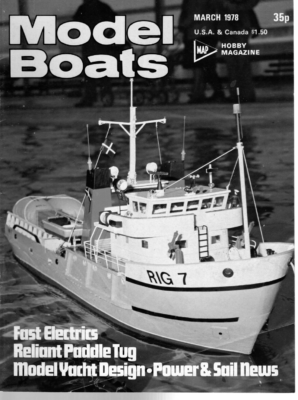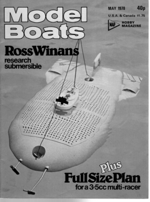 209 April 1978 Woodspring Model Sailing Club Member JIM EDWARDS describes his Schooner Rigged ‘Kubernetes’ Aro three years ago two of our members, Jack and Steve Wadman, built a fine model of the wishbone schooner Argus twice the size of the original MAP plan version. When I saw how well it looked and sailed on the water I decided that one day I would build something similar. The opportunity to do so came when another of our members, Bob Underwood, added Kubernetes to the range of glass fibre hulls he has produced. Kubernetes is the 79:36lbs. heavyweight designed by John Lewis and the shape of the hull suggested a schooner rig to me, and so I set about designing a sail plan. As I liked the look of the wishbone spars on Argus it was decided to incorporate them on both the fore and mainsails. When it came to determining the sail area I decided not to use the original sail area of Kubernetes which, of course, has to comply with the A class rating rules, but instead to use a sail area calculated from an equation I had developed. This equation relates sail area to displacement as this seems a realistic approach to producing more correctly ‘canvased’ yachts. Just as nobody would use the same size engines in boats displacing say, 50lbs. and 75lbs. and expect the same performance, so the sail area should increase with displacement to produce the extra force necessary to drive the greater weight. The equation is: D?2 25D + -A50, ose 110 —D Total sail area Left in light airs the enlarged sail area shows its value. Above, details of the attractive rig. when D is the displacement in Ibs. As with most equations of this type it has its limitations. For example if it was true for all displacements then a non-existent boat weighing Olbs. would need to carry 450 sq. ins. of sail! Also the equation produces a curve (Fig. 1) with a maximum point at 88-4lbs., beyond which the sail area decreases as the displacement increases. 2300 2100 1900 1700 ; The sails are operated from a single winch drum which is possible provided the points of attachment on all three booms are the same distance from their individual pivot points. An 84in. x 34in. spade rudder is fitted 2in. forward of the position shown on the MAP plan and has proved to be extremely effective giving the boat a high degree of manoeuvrability. On the water the schooner rig looks very well and attracts favourable comments. It would be nice if this type of sailing boat became popular as races between schooners would be a fine sight, as well as testing the racing skills of their skippers. TOP SUIT SHOWN. 2ND SUIT DIMENSIONS IN BRACKETS. 1500 + 1300 1100 10 20 30 40 50 60 70 80 90 100 iO Fig 1. Calculating the sail area for 79-36lbs. produces a figure of 2,230 sq. ins. which may seem excessive but in practice has turned out to be about right, and the final sail plan is shown in Figure 2. With the top suit fitted the boat sails well in winds up to about 15 mph, and is still manageable beyond _ that, although it is advisable to change to the second suit. Model Boats 226 T= month, I will cover the remaining method of utilising the modified sectional area curve to produce a hull lines plan from the existing basis hull half breadths. This technique offers the least scope from departing from the original basic design. (2) Procedure for Drawing a Body Plan from Existing Basic Hull Half-Breadths It is possible to draw a body plan, correct for Cp and LCB from a basis form, by lifting sections for the new design from the basis hull lines plan at a revised spacing MODEL YACHT DESI G B.Sc. Al~~<. y( SA.CURVE / [ans 1 Le WA from the ends. The sections are derived without the need of fairing. Fig. 1. below, shows part of a sectional area curve, which has been corrected for the new design, superimposed upon the original S.A. curve. Part Four by CHARLES ROBERTSON, D 7ba_ he VA 7 me TM EyLS if NAV. ARCH. LWL b4=by ° Basis. spacing: Original eer oe T * D. Basis, ss T+ SN EAS x 8Design. esign.Basis B Design. D: Design Draught. 2/ BASIS WL. PLAN. | ae ee HALF BREADTHS LIFTED AT A MODIFIED POSITION (4°). | If we now consider any station (4 say) on the new design, it will be seen that if we drawa line at A horizontal to meet the basis sectional area curve at B, then the sectional area of both curves at 4A and 4B will be the same. We now draw a vertical at B. As the reader will recall, the S.A. curve is plotted on the same scale as the basis half-breadth plan, either on the same base, or directly above or below it. If the vertical at B is extended, it will therefore cut the waterlines at that corresponding position, (the revised section spacing 4’), where we now lift the waterline offsets. These offsets are correct for the basis design, but will require a correction for the new design beam and draught. The following relationships apply: 4 Breadth (design) = 4 Breadth (basis) « b(design) where; b (basis) 4+ Breadth (design) = maximum half breadth of 4 Breadth (basis) b (design) b (basis) load waterline. = maximum half breadth of load basis waterline. = half breadth of station under consideration (unknown). = half breadth basis at the modified station position. therefore, (b,) design = (b,’) basis « (4 Breadth) design and (4 Breadth) basis waterline spacing (design) = Original spacing x Draught (design) Draught (basis) We repeat this process for the other sections, dealing up to the LWL only (we could continue above, but the sections would probably require redrawing anyway in order to obtain a good hull balance — so that we may as well choose the type of body which we wish to achieve above the LWL in the first place and balance this). It will be noticed from this description, that we again require a tentative sheer plan and also maximum load water line half-breadth for our new design. I feel that even though this procedure is rigid, it provides the most elegant method of quickly modifying and producing a hull lines plan up to the LWL. This lends itself to a de
