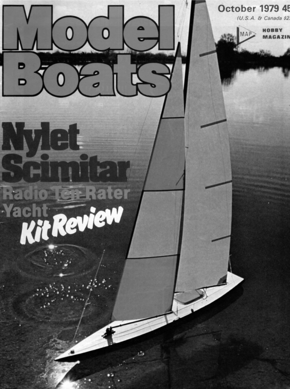 October 1979 45 (U.S.A. & Canada $2. HOBBY MAGAZIN NYLET “tr RIOR SCIMITAR HE NYLET Scimitar is the latest addi- tion to this firm’s stable of model racing yachts. It is the second ten-rater, following the successful Pacemaker which featured in last year’s World Championships. Reviewed by Although similar in construction, comparison with the Pacemaker show some changes by designer Tony Abel. Most obvious is the length, 64in for the Scimitar against 78in for Pacemaker. Draught at 183in remains the same but the new boat is lighter at 173Ib. Mast height is Chris Bowler However this is a minor point in a complete kit costing as much as some ‘hull the same at 78in but the waterline for the only’ deals. Nylet inform though that new new boat is 83in less at 543in. On first impressions the kit larger and clearer drawings are now being seems used. sparse, but with a hull and deck moulded in fibreglass and very little wood to add to these this is hardly surprising. Fittings are to the usual Nylet standards as of course are the sails. Included in the test kit were the new swivel mast mount and the black anodised aero mast. Another new feature is the radial mount, in a deck slide instead So to the building First stage is rather novel, if you are used There is rather a lot of paper work in the kit. In my example the instructions took to putting inwhale strips in the hull first. the form of two duplicated sheets and several drawings. These | felt were rather weak: too much information imparted crossbeam stations measured from the bow at ten inch intervals. The 3’x2” Here we mark out a building board with inwhales are then pinned to the board following these guides. Crossbeams are then wire, plus bowsies and a tube of plastic from one drawing and too much cross referencing to arrive at some measure- padding for the bulb fitting are included. added at these indicated positions. Here ments. the plan was less than totally informative, of the alloy channel. All rigging hooks and sizes were not given for crossbeams, so | used the offcuts from the inwhales for as many. as | could and ‘sinxtin between. This will prove useful, if slightly heavier at stress points such as jib mounts and the area of mast pressure at the deck. | left the transom crossbeam out, to fit later when the inwhale frame had been fixed to the hull. Before bonding frame to hull, | marked a centreline lengthwise on the hull. From this | took a line at various positions and measured the centre to gunwhale distance. With dividers | transferred this to the inside of the hull. Using these guide marks the frame can then be lined up accurately and the hull sides trimmed. A little shaping of the frame may be needed to ensure a snug fit to the hull. Also it is vital to roughen the area to be glued when using fibreglass resin, so that a good bond is obtained. Trimming of the hull sides is always a chore. | have yet to find a really effective way to do this. Usually | start with a dreadnought rasp to remove the worst, finishing with a fine file and glasspaper. Of course care has to be taken not to damage the hull. Once this is done the hull may be turned over on the board and the keel slot cut. This is another of those jobs | dislike. A mistake here is almost irretrievable. Again Heading, against the sun with sails slightly filled in light wind. Left top, the marked out baseboard; middle, inwhale frames pinned to board and bottom, complete skeleton frame. 612 Model Boats there is no quick way. Using the cord marking the hull centreline, mark the centreline of the slot and measure the distance from the transom to the rear of the keel slot. For some reason this is not on the plan. Nylet give a measurement to the top of the keel box inside the hull but of course you can’t arrive at that without hav- ing first cut the slot! For future reference the distance is 26in. Having obtained the centre and length of slot, the shape must then be cut. Using the keel box as a very rough guide, draw round it to the airfoil shape. A series of soles is then drilled inside this line and “sing a wedge shaped toolmaker’s file, a Sot opened large enough to put a cutting Dede in. | use a Stanley saw blade, it is @uite fine and does not chip the gel-coat. er that itis a question oftidying up with me We. Take care that you do not get way, fibreglass works quite easily we can soon overdo it. | ended up e keel slot just a little bigger than = mow have the basic structure, hull, arrange your work to leave the resin to set overnight, so much the better. Fitting the Keel Box and fin slot. When summarised it It always requires some thought as to how tseem much but this takes about to line the box up fore and aft and to TM twelve hours work. If you can ensure that it is square when viewed from the side. The method | have used anc which seems to work is to mount the hul in a cradle, | used my Cha//enger stand but the plans say cut upthe building boar¢ to make a cradle. Obviously a matter fo personal choice, but my way saves or building boards! Using a spirit level, chect Left, cleaning up frame, showing brace pieces of ply. Left below, marking gunwhale line tc transfer to inside of hull. Above, test fitting of frame to marks and below, no washing fo! one day as the hull is bonded to the frame, held by pegs. Top, cutting of keel slot with Stanley saw knife October 1979 61 latitudinal and longitudinal levels; when sure of these place the fin through the slot and firmly into the keel box. Let the box settle into the hull and with the fin hanging free check position by sight both fore and aft and from the side. | needed to adjust mine slightly by resting a set square against the fin to swing it into line. At this Right, keel box tacked into position. Note spirit level referred to in text. Below, deck being pulled down with tape to hold in place. Bottom left, keel retaining nut, and alloy keel plug fitted in keel fin. Bottom right, hull with keel in place. point tack