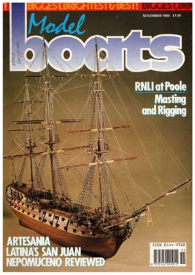 : C> CP (ACE SD Yep estes DECEMBER 1989 £1.50 ISSN 0144-2910 770144291015 | All these changes will take formal effect at the start of 1990. We hope that this will enable the Group to continue to grow and to provide a service to those of you who take an interest in older styles of model yacht. And those of you who take an interest in older styles of toy sailing boats. In the last year a very much larger number of these has been coming to light in all sorts of shapes and sizes. Some of them are of high quality and well worth a bit of trouble to restore to sailing condition. Three ways of coming at the vintage thing By chance, I have by me photos of three separate projects which nicely illustrate the three separate approaches to vintage model yachting mentioned in the aims we have written for ourselves. recognition that we are now big enough to stand on our own feet and the fact that when I cease to be MYA Secretary there The first is a restoration of a 15 ton cutter built to the “1730” Tonnage Rule. She is unusual in being precisely dated to 1890 by an inscription carved inside the hull by the original builder, who signed himself “JJ”. She is called Owl and is thought to have originated in the Milford Haven area. The boat originally had no rudder, but the present owner has decided that a simple form of automatic steering is going to be needed to sail her sensibly, so the rudder is a recent addition. The standard of finish on the hull is high and the spars so far completed include a very nice lightweight bowsprit with a built in downward steeve. I like this touch, which was very common on models a hundred the MYA. bowsprit makes clear that the bobstay was not just an ornament. It really was an The Vintage Group goes it A 15 Tonner of 1890 in course of restoration. alone At the end of last month’s piece, I mentioned that there would be some important news about the organisation of the Vintage Group. At a meeting held in conjunction with the Vintage Day at Poole in August, the VG decided to set itself up as an independent organisation in its own right rather than as a group of individual members of the MYA. This reflects no dissatisfaction with the MYA, but a years ago. The light scantling of the will be no administrative advantage in running the Group as an integral part of The new group will be known as The Vintage Model Yacht Group and will have the following aims. (i) To create a structure to facilitate the enjoyment of vintage working model yachts and associated modelling. (ii) To encourage participation in and appreciation of such modelling, whether by the restoration of older styles of boat, the building of new boats to vintage designs or by the design of boats in the style of the past. (iii) to encourage the study of the history of model yachting. Though we considered making formal provision for vintage powered models, we decided against this as the membership is essentially concerned with wind powered craft. This does not mean that the occasional steam clockwork or electric model will not be welcome at our sailing days. For the present at least there will be no formal constitution and the committee, constructed on a regionally representative basis, will be filled by a combination of election at general meetings held at 18 Schooners from the beginning of the century; all these are new build to old designs. Vintage days, supplemented as necessary by cooption. The Group will affiliate to the MYA; how else can we get our third party insurance so cheaply. The subscription will be held at the present extremely low level of £6. In the foreground, a hull, a mould and a grp shell for the famous Prospero. MODEL BOATS may have to be adjusted by a bigger rig or less ballast to get a good sailing performance. Nevertheless, she must be the first boat designed to the Rule since very early in this century and is an interesting concept. Well worth the trouble of trying. Vintage Day at Poole 20 August As well as the business discussions reported above, the VG managed to get some sailing done at Poole. Among the boats that showed up were two recent designs in the spirit of a rather earlier age. One is a glassfibre version of the very pretty one rater Moonbeam that Dennis Saxcoburg was sailing in a varnished wood form last year. In the style of a 1950s vane boat, she looks and sails well. This version has a few changes and refinements from the design that we saw earlier. The other is Imp a very small vane A close-up of the bow of one of the turn of the century schooners. essential part of the engineering structure needed to hold up the mast and keep tight the stays on which the headsails set. One of the most important factors in trimming a boat to sail effectively to windward is to keep the headstays tight and to prevent the luffs of the sails sagging off to leeward. This applies equally to an 1890’s cutter as to a modern RM, though it’s much more difficult to achieve on the older style of boat, where there is more than one headstay and, usually, no means of setting up an effective backstay or runner to take the stress of the weight of the wind in the headsails. Even though models have masts that are proportionately much stiffer than in a full-size boat, the spar only needs to yield by a very small amount for the set of the headsails to be destroyed. As a slightly separate issue, funny rigs consisting only of a headsail or of a pair of headsails with no canvas set aft of the mast never work well because there is no collection of string and struts mounted behind the mast that can withstand the forces generated by the sails. The result is that the head of the mast bows forward and the headstays go slack. Some years ago, Iran a 10-rater with a twin headsail rig and discovered the hard way that though fast and very close winded in really light weather, she would not maintain this performance once the wind got above about force 2. The second is a collection of schooners built to vintage plans