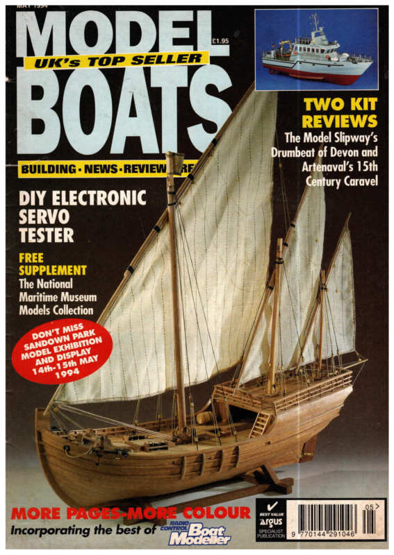 a 22° Se . – a = BS sas = Zzenge Oagte Arm ste % aur Ie vA = Som + oS a ne F ; as ¢ Ez: & e a2 HO BIGGER! We are not going to waste a lot of the extra space and colour in this new, enlarged and improved look Model Boats by telling you what you can easily find out for yourselves by turning the pages! However we would like to take just a few lines to firstly welcome new readers who have made the switch from sister magazine Radio Control Boat Modeller – we intend to integrate some of the best features from RCBM into Model Boats – for example in this issue we have R/C Yachting, a DIY Electronic Construction Project and an extra Kit Review, the Drumbeat of Devon. The R/C Yachting column will alternate with a new yachting column, Yacht Lines, starting in June, from the Model Yachting Association’s new Publicity and Promotions Officer. Secondly, we would emphasise to regular MB readers that this integration will not be at the expense of MB ‘normal’ material. In order to assimilate the best from RCBM, the editorial pagination of the magazine has been increased by 8 pages. To further increase our capacity, initially, all the Association oriented material, that is MultiMatters, Roostertail, Straight Running, Hydro Topics, Scale Scene, Small Yachts and Yacht THE BEST Lines, will be printed using a slightly smaller type size; thus maintaining the content. If any readers have difficulty with this, please let us know and we will revue the decision as appropriate. The most striking improvement is of course the increase in colour content – from our recent 10 pages to a whopping 24 pages! – more than twice as much. Previously, every month, we agonised over which excellent colour photographs would have to be relegated to a black and white world – nowa much larger proportion will be in natural colour. And just to get this first issue off with a flourish, you should have found the 24 page colour supplement about the National Maritime Museums Models Collection – this the first part of an exciting new partnership with the Museum which will continue over the Summer months. And all this has been achieved with only a modest increase in price. So, all in, a fantastic 96 pages of model boating material – more than enough to keep you reading until June issue – on sale 13 May. Remember, All you need for the entire hobby can be found within the pages of MODEL BOATS – the FIRST monthly and still the BEST! AT LAST – A MODEL BOATING MAGAZINE COVERING THE ENTIRE HOBBY! Model Yachting Welwyn Garden City Hydro Date Change To avoid a clash with Victoria Club’s 90th Anniversary Regatta, the Welwyn Garden City Society of Model Engineers have moved their Hydroplane Regatta from 5 Juneto 3 July. Blackburn & District MBC Reformed A group of model boat builders have reformed Blackburn and District Model Boat Club, after regaining permission from Blackburn Council to use Queens Park boating lake. The interests of the club are scale, steam, sail and fast electrics. Sorry I.C. are not allowed on the lake as Queens Park is a nature reserve. The club will be affiliating to the MPBA. Disabled members are welcome as a number of members are disabled and access to the park and lake is very good. Summer sailing times are Wednesday nights from 6.30pm and Sunday mornings, 10.00am to 1.00pm. Please contact John Fawcett, Tel: 0254 663390 for further details. Grays Thurrock MBC Exhibition The club will be holding their fourth annual exhibition at the Thameside Complex, Orsett Road, Grays Thurrock, Essex from 3 to 7 May 1994. This event has been very successful in previous years with model boats of all types on display. For further details ring Mrs I. Harrington on 0375 378383. MODEL BOATS MAY 1994 MYA Racing Calendar,‘May 1994 Association lst Press Release Ist The Council of the Model Yachting Association have set themselves the goal of doubling their membership by the year 2000. To achieve this and to fulfil the Association’s responsibility to encourage and promote the sport, the Council are pleased to announce having co-opted Anthony Corbett as Publicity & Promotion Officer. Anthony is both a keen sailor and active R/C-yacht skipper and ‘has brought to the MYA a number of proposals that try to address not only development of the sport through competition, but more importantly as a fun activity that should appeal to modellers and sailors alike. The good news is that the MYA are now in a position to address the requirements of the numerous people who prefer less competitively oriented classes. Providing the Clubs support the proposal, it is intended to develop and promote a “Division” for the modeller and recreational sailor who is more interested in sailing one of the many semi-scale kits already available in the market place. Already involved in the process of organising a number of events intended to appeal to both modellers and sailors, Anthony would like to hear from any manufacturer, distributor, builder, sail maker etc., who would like assistance in running promotional events or being registered with the MYA and its many members. ABoat South Western Ranking Race Peck 36 Class Midland District Champs lst | Marblehead 1st | Marblehead ist 1st 2nd Broadlands Trophy Broads M’ket Bosworth Rum Trophy Six Metre Cleveland Marine Modelling Match (3) _— Lee Valley 1 Metre 1 Metre Gwynne Bowl-5HourRelay Solarkraft Cup = Eastbourne Platt Fields _ 8th 8th ABoat 10 Rater Wyre Trophy Open event 15th 15th 10 Rater Marblehead South Western District Champs. Woodspring — TCup : Birkenhead — 15th 1 Metre Metre Trophy 2lst Vintage Group 22nd 1Metre 7/8 Marblehead Scottish District Ranking Roce Edinburgh 14/15 Six Metre 15th 1 Metre 22nd Marblehead 22nd 36 Class 22nd Marblehead 22nd Marblehead Fleetwood— Yeovil . MYA National Championship _ Gipping Valley. Gosport _ Isis Trophy – Banbury Gane Solent (Setley) Hatfield Trophy Chelmsford Met & Southern Championship Guildford — Yorkshire Cash RegisterCup Lee