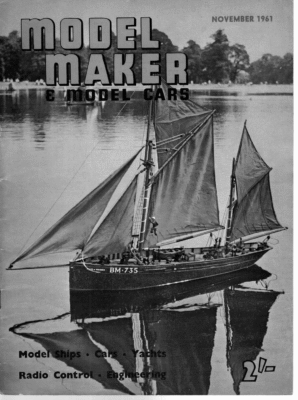 ~ Fullssize plans for this 35 in. E-Boat! ° ODEL SHIPS – CARS – ENGINEERING – YACHTS 2 6 ~-BALce y- WOW IMIANRIE!R) design is basically a good one. These two boats were superbly built by Ken Jones and once again it has been shown that to succeed in this class you must take the care to construct the hull carefully, fit it out with the best possible equipment — not necessarily the most elaborate—and tune the yacht up with great A development of the very successful design PUQNOUUUOAOUUUONONGQOQUUUOOOOOUUOOOAUOUUUOUAIE TVUQOQUUEOOAQQQQUOEAGQOUUOOOGOGUUOOOOOUCUUH ‘Moonshine’ BBE Fe HAT By JOHN LEWIS precision. All these things are not difficult, but merely absorb a little more time than a hastily prepared project and the result is vastly more satisfying. The designer’s contribution to success is relatively small, but it is important in that it is the foundation stone, Careful observation of various yachts and their performance under all weather conditions has led me to believe that there are three basic types of International A Class which can be successful under most conditions. Firstly, there is the type produced and sailed by B. H. Priest and which has won the ChamHere we have pionship on two occasions. 54 in. L.W.L. and minimum displacement. This gives a moderate sail area, but when a narrow hull with very rounded section is employed the yacht is easily driven and has At the recent National A Class Championship at Fleetwood I was very satisfied that two yachts to last year’s Moonshine design came in second and third places. As this was in a field of over forty boats, and in earlier races at Birkenhead they had also occupied the top places, the indications are that the TOP HAT John Lewis uw > — \ \ <— 2 3 MAST | 4 —— “ 6 5 Hi § Sage - 2 Ne = t ! 9 x ra =. a Ao Beas a el i vd 0S, — bSS Geen eee A . \ J A MAKER PLANS SERVICE MODEL 28. CLAREMDOM AD. WATFORD. HERTS Za NY LwWL 5 :0" LOA. 81-25" LWL BEAM. 14-25" : DISPLACEMENT 60°0 LBS. (46LBS. LEAD) ORAUGHT Yo OBL 2-2" 1-74" (1620 CU INS) 52:06" Av F 44" SA 40-03 S AREA \ ‘\ 1604 SO INS. , | & FULL SIZE BODY i PLAN 672 ae ae wow e- em DECEMBER adequate power for heavy weather conditions. Secondly, there is the heavyweight job of 60/64 lbs. displacement on an L.W.L. of 52/54 ins. This type was promoted by the late Admiral Turner and has proved to be quite good under most conditions. The heavy displacement allows a large sail area and the relatively short hull is very powerful due to a large amount of ballast. There is something of the steam roller technique in this type which does not appeal to me, but nevertheless has a large following in the sport. The type’s greatest weakness is in sailing before the wind under fresh to strong conditions. Thirdly, there is a compromise type such as Moonshine and Top Hat, the displacement being in the region of 60 lbs., but with a slightly longer waterline. Naturally, the sail area suffers somewhat, but the hull is more easily driven than the second type mentioned as it is easier to dispose of the displacement without having a pot-bellied canoe body. In fact, several people have found it difficult to believe that Moonshine is nearly 60 Ibs. weight. Top Hat is a direct development of Moon- shine, based on what I have observed during 1961 this season’s racing. The depth of the canoe body has been very slightly increased and this has enabled me to deepen the forefoot and sharpen the waterline entry in the region of the garboards. This modification has increased the slope of the profile and therefore the overhangs are a little shorter. This will be of no disadvantage as it is only under extreme con- ditions that overhangs of over 14 in.. length can be usefully employed, although aesthetic- ally they are attractive. The displacement has gone up slightly and the small quarter beam penalty has been re- moved. These alterations have increased the sail area to 1,600 sq. inches and there should be no fear of poor light weather performance. The hull profile has been slightly modified mainly for aesthetic reasons, but there is an important modification at the extreme after-end of the garboard run. This I hope will have improved the flow of water at that point and lower the overall resistance. I am confident that Top Hat will be able to hold her own under most conditions likely to be met on any sailing water, and that she should win many prizes if well fitted out and carefully handled. SSSAIa VLSILISLSSSSALLADADLSDALSLSLIDALDILALDS A NOVEL DRIVE } 2 = | Is LW motor control! ist — 25-0" 2N0,3R0,4TH — 24-5" 1sT—20°5" 2ND,3R0,4TH —20°0" --" 4 -_—" CONTROL MECHANISM This photo from Franz Czerny shows a West Berlin model by Herr Steiner using a Ruppert Twin 8 cc. diesel. Note twin screw drive through worms and infinitely variable drive (full ahead to full astern) by means of a friction-driven disc. Two bracket-mounted Micromax motors adjust disc position by an axial spindle. Two R/C channels only needed for full SAIL PLAN va SCALE -4 RADIO ia 673