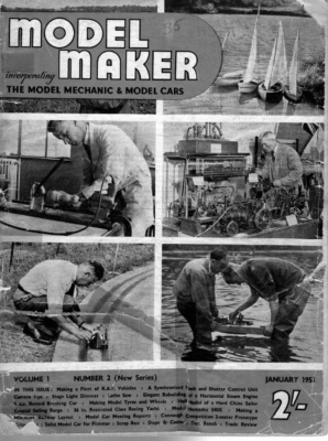 MOE incorporaling Mm a K THE MODEL MECHANIC & MODEL CARS VOLUME 1 IN THIS ISSUE: Daughter : Making a Micrometer : Scenic Effects for Model Buildings An ETA Engined Speed Model Car Cornish Harbour : : Trams and Tramway Modelling : : : Vice Clam Mould : : On the Right Track eal ee x, . my. ji TE : * 7 A Model of Pharoah’s Se 5 es : : A Model Self-Oiling Lathe Centre Australian Model Car Championships Load Waterline Calculations B.R.M. Prototype Car : Building a Skirrow Midget Model Car Grindstones Driven by Lathe Motor : New Model Car Rail Track & Novice Starts Model Engineering ee Gear FEBRUARY 1951 NUMBER 3 (New Series) “— : : Coastal Sailing Barge New ‘00’ Series : : Braine Features MODEL MAKER The Braine Automatic Steering ; i Z_TENSION’ COR a Lo Tes | sek ! 7 > ay – << el S Teae A y* \ = DRILL & TAP 6BA. SPINNA KER Uv RADIUS teuilout e BEFORE the advent of the automatic steering gear the model yachtsman carried . a pocketful of swing rudders of varying weights which he changed to suit the prevailing wind. Under these conditions the steering of a model was a very haphazard affair. The Braine Steering Gear, conceived by Mr. Braine of the M.Y.A., has changed all that and is now al- most universally used. A few years ago a Swedish model yachtsman invented a pivoted vane steering gear which has a growing following. It consists of a light vane attached to the rudder head actuated by the wind, the movement being controlled by rather a complicated arrangement of links, too complicated for the novice to worry about. The Braine gear consists of a quadrant (Fig. 14), a pair of pulleys (Fig. 13) and two quadrant hooks for the steering lines. Fig. 23 shows a plan view of the complete gear when fitted. Note the crossed lines which is an essential feature of the device. The principle of the gear is as follows: — As the wind on the mainsail exerts pressure on the main boom (to which the lines are attached) the windward line, being crossed over, pulls on the lee arm of the quadrant. The quadrant being fixed to the rudder head pulls over the rudder blade thus preventing the yacht from running up into the wind. When the model is put about on the opposite tack the slack lee sheet becomes taut and operates the rudder in the opposite direction. The quadrant has a series of holes drilled along the arm which enables the leverage to be altered by inserting the quadrant hooks in different holes. From this it will be seen that the farther towards the extremities of the arm the hooks are placed the greater the leverage and, therefore, the greater the angle of the rudder blade. on a pintle bearing. v3 4, iy: Ae enk i QUADRANT 5! | 4 HOOKS. tee RUDDER POST { Wp i FOR . | | : Ses rc H F F oni 694 + RR eae = ——. past 9 sell rire ce me SKEG PLATE. to its central position, which it cannot do if any friction or binding is present. Only practice will enable the novice to use the gear to its best advantage, but the following hints will help him to grasp the main principles. If the model keeps off wind when it falls light the elastic adjustment is too slack. If, under the same conditions the model turns into the wind, the elastic is too tight. When the wind freshens and she keeps off the wind, less leverage on the quadrant is required so move the hooks nearer to the centre. If the reverse, more leverage must be applied by moving the hooks towards the end of the quadrant arms. When the exact settings have been found they will be correct for all time, so make notes of the various settings under different conditions. If you can enlist the services of an experienced fellow yachtsman so much the better. It is well to remember that all adjustments should be slight, or progressive, until the correct setting has been found. Do not be discouraged by the erratic performance of your model at first, such as the keel out of line, any tendency to poor steering performance is probably due to your inexperience. There is only one condition under which the Braine gear is not used. That is beating, or sailing into the wind. A well built model will, under these conditions, steer by the trim of the sails. When beating slack off the steering lines and attach the beating sheet to the main horse. It is of the utmost importance to see that the rudder be free, but not slack, in its tube, and for this reason the heel is fitted pri 4 A rubber centreing cord is fitted, which is adjusta ble as to tension, to ensure that the rudder always returns 154 February 1951 Gear & how to use tt “LADY BETTY” 36 in. PART V. RESTRICTED CLASS YACHT BY SHIPWRYGHT FIG 13. DECK PULLEY & DECK PLATE. FIG. 14. QUADRANT & RUDDER ASSEMBLY HOLE FOR ELASTIC Above : The completed ''Lady Betty'' Yacht. Left : A typical 6-metre showing the Braine steering gear in operation. Although not strictly connected with the Braine + _ = gear there is a device which is part of the steering apparatus of a model yacht. This is known as the beating gye. This enables a model to go about, or change course, after reaching a pre-determined posi- tion when making alternate short and long legs up the course. It consists of an adjustable cord with elastic tensioning (Fig. 24). One end is attached to the outboard end of the main boom, the other end to an eye on the gunwale on the weather quarter. To operate, adjust the elastic so that it is fully stretched when the sail pulls on the beating sheet. The gye then gradually exerts pressure on the main boom until the boom swings over and the model goes about on the opposite tack, holding that tack until she reaches the shore on the next leg where she is put about once more by hand. If this action takes place too quickly the elastic tension is too tight. Should she fail to go about before reaching the shore the elastic is too slack to exert the necessary pressure on the boom. Here again practice is necessary for its successful operation, but it is one which will often win a close race when operated by an experienced skipper . 155 Sv