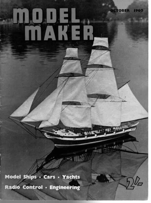 PAISLEY’S LEGGAT TROPHY HIRTY-ONE boats entered for the Paisley M.Y.C. Leggat Trophy race this year, from all over Scotland, but three boats scratched owing to their respective skippers’ ill health; 28 boats there- fore came under starter’s orders at 2.30 p.m. on Saturday 18th June. A good top suit wind made for fast and exciting sailing, and most yachts managed to use a spinnaker. Sailing in general was of a very high standard, most boards being won or lost by a matter of a boat length. Outstanding performers for the day’s sailing were the Sunkiss design Stardust and the Elusive design Blue Belle. Points of interest in these two yachts were the Sunkiss’s fibre glass hull and the sliding rig, both owner made, and the Elusive having a portion sliced off her bows and added in the form of a hollow transom. ane Sunday’s sailing commenced at 11 a.m., but the wind did not behave so well, however, and fortunes were won and lost as it completely changed direction. A large element of luck entered into things, and the less fortunate could be found muttering to themselves in some secluded corner. Nevertheless, general opinion was that it had been an excellent two days’ sport, when the O.O.D. called a halt to proceedings at 7 p.m. The final results were announced by the scorer after the skippers had satisfied their obvious hunger on the tea provided by the ladies of our Catering Committee. First place went to E. Bruesh of Victoria West Club, Glasgow, with his Saida design Solveig with 71 points. Second A. McMillan of Paisley Club, with his altered Elusive design Blue Belle 68 points. Third R. Gillespie of Victoria West Club with his Sunkiss design Kelpie with 65 points. Fourth place T. Dodd’s Pye design Yochabel of Miniature Club, Glasgow, with 55 points, this being the result of a sail off between Yochabel and R. Greig’s Mithras design Yokatana, Yochabel winning by a short nose. The winning Saida was a perfect example of the art of model making. Her fittings were mainly of stainless steel and the vane gear had such refinements as top and bottom balance on the make and break arms and a spring bobbin device for guy adjustment. The only thing not produced by her owner were the sails; a really first-class model and deserving winner. Other models of interest were the two Ducks: their keels had been reduced an inch and a half on the trailing edge and they carried a narrower rudder than as designed. Their owners assured me that these modifications had increased performance, but thought the lack of sliding rig had prevented them from attaining the best results from this type of hull; “over to the experts”. I would like to extend our invitation for next year’s race. We will be only too pleased to see anybody from over the border.and accommodate them over the week-end’s racing. Top picture shows Blue Belle leading Mistral to windward, Kelpie (background) seems to have lost her opposition. Top left: Solvieg and Blue Belle, Left: Yokotani and Emu, another Sunkiss 505 Hi OCTOBER, FTER almost forty years experience of the rule, it may be of interest to compare the dimensions of “Crusader ’ (designed by W. J. Daniels), winner “Y.M.’’ Cup 1924 and 1925, with those of the sister_yachts, ““Moonraker’’ and “Moonraker II’’ (designed by the late Eng. Admiral A. Turner), which won the cup in 1955 and 1959 Tespectively. L.W.L. ““Crusader’’ ““Moonraker’’ 45.0in. 53.5in. Displacement 37.0lb. 63.0lb. S.A. 1,936 sq. in. 1,630 sq. in. THE HISTORY OF THE ‘A’ CLASS Part 3 (Conclusion) Under all previous rating rules, later boats have tended to be much larger than earlier ones, but in the A-Class this tendency has been aggravated by the introduction of Terylene, with its smooth, almost non-porous surface, in place of union cloth for sails. Originally the ‘Class was intended to be one-sixth size models of 6-M. yachts, and I feel that in drafting the rule, Major M. Heckstall-Smith had in mind boats nearer the size of ‘Crusader’ than the ‘‘Moonrakers’’. 1960 H. B. Tucker Apart from this, and the fact that the rule stresses displacement overmuch, the formula is the best that has been framed to date. pad Cannes, Monaco, etc., but of rather smaller size than the 6-Metres So, when in 1957, the I.Y.R.U. launched the new 5.5 Metres Class Rule, many model yachtsmen thought that our rule had been adopted for full-sized racing yachts, as at first sight it would appear to resemble the A-Class Rule superficially. A closer examination, however, reveals that the learned pundits of the I.Y.R.U. Council have not only ruined the formula itself by the method used to ascertain L (length for rating formula), but also added a number of pernicious restrictions that cramp the designer and prevent him from developing the best types he can under the rating limits. The formula is as follows :— Let us next examine the limitations referred to above as (a) Maximum Draught and (c) Fin Keel and Rudder. These two restrictions LVS 1223VD + Be ws 4 = Rating (which is not to exceed 5.5 metres). ass. in combination give us a long, shallow full-keel with the rudder hung on its after end. Very obviously if the maximum permitted draught was 6 feet instead of 4.34 feet, it would have given a far better boat in every way, and as the yachts are not intended for places where they ground at every low tide, there was no practical objection to this. Briefly summarised, the advantages of a greater draught would be:—(i) Greater power and sail-carrying ability due to a lower C.G. (ii) A longer leading edge to the fin making for greater weatherliness. (iii) A more efficient shape of lateral plane, enabling its area to be somewhat reduced, and thereby reducing wetted surface, making for a faster boat. (iv) The rather shorter lateral plane would make the boat quicker in stays, more sensitive on the helm and manoeuvrable. L=Length measured at a height of 1.5 per cent. of class rating above L.W.L.