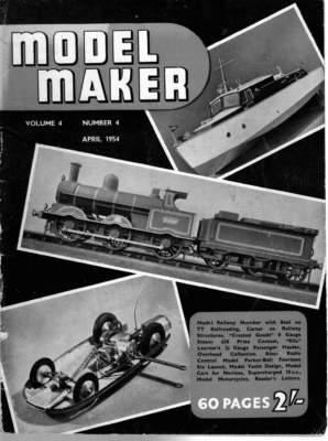 _=VOLUME 4 – NUMBER 42 Horizontal Oscillating Engine without a_ Lathe: Pattern-making for Models : Latest Rail Racing : 10-Rater Yacht : R/C Cabin Cruiser “lone” : Full-size Plans of ‘‘“Waterbug” Baby Electric Launch : Advanced Race Car Described : TT R’ways : Cars for Beginners : “Pegaso” Prototype : 0 Gauge Steam Loco : Electronic Flash : Fig 1 g SE crass A =\ LWL———- 49.00″ ‘ a) SAL AREAS eiasor ce / Pt S| Saat Aco a Be CS iE YQ) e : Raa Bea SB ner PS JOHN 1 2 HIS LEWIS DESIGN SOME OLD a Fic 2 ig ctass A i= DISPLACEMENT. SAIL AREA B=: $500″ 5$6-O0 LBS oy es =N 1S30° these notes last month we discussed the above water profile of yachts and how changes have been made in recent years towards producing boats which are better balanced. Although above water profile and deck plans are important it is the study of the underwater shape of a hull that determines the boat’s capabilities as a racing vessel. There are many ways of approaching the subject but I feel that it is from comparison that most is to be learnt. Therefore, the diagrams this month show the main features of three “A” class and two 10-rater class yachts. These designs are selected deliberately to illus- trate the points under discussion and do not by any means represent the only answers to the great problem of what is the best form of yacht. It is necessary for the designer to decide, right at the start, what principal dimensions the boat is to have. There are advantages in beam, narrowness, depth and ‘shallowness. compromise must be struck. Some Generally speak- ing when a heavy displacement is called for by the rule, such as “A” class, it pays to go for a narrow hull and the three examples shown have this SERIES WITH COMPARISONS NEW STYLE OF CRAFT Sass LWL : & CONTINUES characteristic. Increase in length 278 gives speed but always results. in loss of sail area. It would take a bold man to prophesy how much more sail area will be reduced in order to obtain longer hulls but I think we: shall not be long before “A” class boats are carrying about 1,400 sq. in. as; an accepted fact and 10-rater 1,000 sq. in. on 60 in. L.W.L. When winds are very light we shall sit in the boathouse drinking tea and planning even longer yachts. Fig. 1 shows a typical “A” class yacht of the early °30’s and is in fact based on a design by the late W. H. Davey. The feature about these designs which was not usual in those days was the narrow waterline beam of 13.5.in., and the profile of the canoe body which was almost symmetrical about the midship section and is almost the arc of a circle from waterline ending to waterline ending. Comparing this with Fig. 2 we see a typical modern “A” boat of 55 in. L.W.L. and of heavier displacement. The L.W.L. beam is 13.5 in. and the cross sections instead of having the nicely rising floors of Fig. 1 have become more U-shaped. This enables the greater displacement to be achieved without having a very deep canoe body. Looking at the profile of the canoe body it will be seen that the run aft is very much flatter than Fig. 1. The increase in L.W.L. helps in this and also a considerable tightening of the curve around 1954 MAY, to the areas of the after part of design (5) and conversely the areas of the after part of design (4) equal the areas of the forward part of design (5). Thus the curve of areas is reversed and the midship section. This flattening of the run is a very desirable speed factor but should be accompanied by a narrowing of the deck line aft. Neither of these designs carry much Q.B. penalty and it is interesting reduction of sail area by 300 sq. in. note a cycle of development is complete. the ee Fig. 3 shows a proposed A” to class where a displace ee es ment penalty is accepted in Meine of the displacement is carried in the heel and an extremely SAIL AREA——1 490°” A large proportion pee le ees | 434 eS without any apparent bilge. Comparing the curves of areas of these three designs shown in Fig. 6 it will be seen that Fig. 1 has a perr fectly normal shape to the displacement curve. Fig. 2 shows a_ considerable in- The curve of Fig. 3 shows SEE RSS soa aii POA LS ae \ OC ot Je \= Ciig 37° S====} a fig 4 oe — Cpe crease in the rate of displacement forwards and despite its increased total displacement is in fact an even finer curve in the after part than Fig. 1. HS ] MESS The L.W.L. beam is 12.75 in. and the hull should be very easy to drive. I feel very tempted to build to a design of this type. ‘ Nf S ee eee Can re P == V sections are very round and f{\\\ W either Fig. 1 or 2 and the = ah fine canoe body is the result. It will be seen that it is both narrower and shallower than ls e ( si BER REE se Les eae ser nce =a order to allow finer lines of the hull. Coa gaeon Fig 3 ee + an even finer run aft and with the reduced displace- of The two 10-rater designs shown in Figs. 4 and 5 ee ee CURVES OF AREAS demonstrate the same trend —____ Spee COE OR ORE, ; in design, i.e., the increase in L.W.L. accompanied bv TM CURVE OF FIG. a an increased rate of displacement in the front half of the sow _— boat. note, It is interesting = =~ ~ _ STERN. to that. by pure coincidence, the cross-sectional] areas of the forward part of esign (4) are exactly equal _sow CURVES OF AREAS oF |O’ RATERS. —<—=— CURVE OF FIG.5. fig? STERN. sinieenmiaieel either : S =e than — x at ike am hull IO RATER WRN - driven the others. canoe body more easily i. ment of the should be a (WODEL MAKER) DECIMA ‘T is design was undertaken primarily as a test exercise. For some time I have been considering ways and means of making part at least of the design work a more or less geometric process, without any significant loss of flexibility, and Decima was undertaken in order to try out some of my ideas in practice. Doctor Harrison Butler, in his well-known work on cruising yacht design, pointed out that at a comparatively early stage in its development a design could