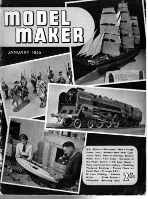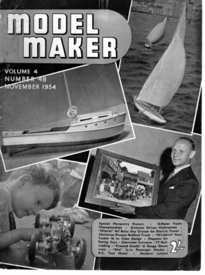 The Cabin Scale Electric or 30in. Barge—a Royal Cruiser Diesel for Power : Cosmic Checkers—3D Game : Lola Simple Outboard Conversion Unit for home workshop Construction : Electric Motor Review—First of a New Series : Table Top Car Racing Track : Airscrew Driven Racing Car : New Junior Class for Model Yachts : Prototype Parade—Vauxhall 30/98 : All Metal Steam Launch : Model Cars for Beginners Readers Letters Vi y2 BY VIC SMEED Whether you like small boats or not, if you are interested in the health of the movement as model a_ yachting whole, this article concerns you T HE thing that strikes most visitors to essential thing, the idea that he has a racing established model yacht clubs is the model, is missing when other boats to the same specifications are unlikely to be encountered. extraordinarily low percentage of young memThe answer is, we feel, a new, smaller class. bers. With a sea-faring reputation as a nation. and with the knowledge that few youngsters Oh, yes, smaller boats are less efficient, have reach maturity without the desire to possess a a lower potential speed, etc., etc. BUT they yacht, this state of affairs seems quite astonish- can be built simply, cheaply, and quickly and ing, and has occupied the editorial thoughts they can be raced on equal terms. Most important, they can act as a stepping stone to Conversations with expert for some time. bigger and better things—a stepping stone yachtsmen—including some connected with which has been noticeably missing for years. boys’ schools and clubs—bear out our idea Further thought and consultation led us to that the troubles are (a) cost, and (b) time. the size and rating. With the growing popuNovices wanting to go in for model yachting (novices, that is, of all ages and types) are _larity and the international acceptance of the 50/800 rule, we felt that halving this rule confronted with the necessity of building at would form an excellent basis for a new class. least a 36in. boat if they wish to race, since this is the smallest accepted class. Nowadays, Some simplification seemed desirable to make measurement easier, and to compensate a little an expert builder making all his own parts might expect to produce such a model for for wind gradient, surface effect, etc., it was around the 50s. mark; for the tyro, £4-£5 is thought expedient to allow a slight increase in sail area—up to 14sq.ft. or 216 sq. in. likely to be involved, plus a great many hours of quite skilled work calling for some tools instead of the 200 given by geometric scaling down. The result is the Half-Marblehead or which are not likely to be found in the normal 4M, or, to borrow from our American cousins’ No wonder, then, household tool drawer. that the schoolboy cannot seriously look at a idea of avoiding confusion with fractions, the model, and that the adult who would like to MM Class, the full specifications for which are given in the top right panel. try his hand at yachting (and is thus a potential Advantages for this class are (a) low cost, club member) feels that he is called upon for too great an outlay to try something he doesn’t (b) low building time, (c) easier building techniques, (d) opportunity for inexpensive know if he’ll really pursue. There are, of experimentation and home designing, (e) course, smaller models to build, but the 698 DECEMBER, 1954 encouragement of juniors (and fathers), (f) portability (what about proxy postal races?). Disadvantages are the lowered comWe parative efficiency and—what else? invite pros and cons in our Readers Write feature. Remember, the aim is to give an inexpensive introduction to would-be enthusiasts, with the opportunity of competitive sailing—a general whetting of the appetite, L.O.A. MM CLASS RATING RULE 25in. 4in. tolerance allowed. SAIL AREA Not to exceed I} sq. ft. (216 sq. in.). HULL Hollow garboard not less than jin. radius. checked with halfpenny.) (Can be BALLAST Movable ballast prohibited. Weight of ballast must not be altered during a race or series of races. BUMPER (or FENDERS) Not included in L.O.A., but must not exceed j{in. overhang. SCANTLINGS AND MATERIALS as it were. No restriction. Now, a new class can best be considered by producing a boat or two to the rule. This month, we are presenting Water Baby, a conventional round-bilge design which has received favourable comment from several experts, and which is fitted with a very simple vane gear we have evolved, so that training in the use of a vane can be had. Next month we shall publish Sea Urchin, a hard-chine boat of simple construction, with a new ultra-simple steering gear. Later, we hope to publish other designs and articles to widen the field. We have reason to believe that if reaction to this MM Class continues as favourable as it has proved up to now, the M.Y.A. might consider its adoption as an official class, providing that a resolution for its adoption is forthcoming from an affiliated club. With this in mind, we intend to open a register of boats; you build your boat, and on completion submit details to us, when, if the boat fits the rule, we will allocate a sail number. When fifty boats have been registered, we will put up a trophy for annual competition, and, should the M.Y.A. eventually adopt the class, the register will be handed over, when official acceptance of the boats will merely entail their submission to a club official for checks. Well, there is our proposition. We feel sure that readers will have much to say about it, and we cordially invite your views. Meanwhile, to give you an idea of the practical application of the rule, here is the first boat No limit to L.W.L. beam, draught, freeboard, tumble- home, or displacement. PROHIBITED Movable keels, metal fin keels, or others without Centre boards, lee boards, bilge hollow garboard. boards, bowsprits, and overhanging rudders. S.A. MEASUREMENT Is taken as a simple triangle between head, tack, and clew; roach, bow, etc., are not measured. SAI