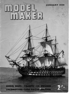 = MANE FULLSIZE PLAN VOSPER R.T.T.L. “ SNO-CAT CATAMARAN LOTUS F/I idiia Ti ! : MODEL MAKER) model principles provided sufficient data to ensure satisfactory performance with Sea Cat, Vic Smeed offers yachtsmen SEA MEW the first ‘serious’ Catamaran design for exciting sailing ITH the “discovery” of the catamaran by the full-size yacht types, and the tremendous publicity received by such craft on a national scale, it is hardly surprising that modellers should begin to show an interest in the possibilities of a cat. To the best of our knowledge the only cat model so far published (apart from very small examples in this magazine, and two smallish kit models) is the 30 in. model Sea Cat in Model Maker Manual. Although of very simple form, this model performs very satisfactorily, and it is therefore safe to embody many of the principal features in Sea Mew, albeit this is a larger, nicer-looking, and altogether more advanced design. Since we are moving into what is virtually a new model field, there is little previous experience to draw on; however, a study of successful full-size craft—the Amateur Yacht Research Society bulletins are perhaps the most helpful—plus applicable basic sailing and logical development of these ideas has produced Sea Mew. Perhaps the greatest value of the design is that it will provide a model which can be compared directly with conventional racing yachts, and any builder who arrives at the pondside with this model when any normal M.Y.A. 36in. yachts are afloat can be assured of an extremely live interest from all present! It would naturally be foolish to suggest that Sea Mew exploits the catamaran configuration to the full, because we simply don’t know. She could probably carry much more sail, especially in light airs, and we may eventually have to change our ideas on hull shapes, length/beam ratios, displacement, etc., but nevertheless we believe that she incorporates just about everything that is definitely known at the present time. After all, we’ve got to make a start somewhere, and in ten years’ time we may know enough to say that single central fins and rudders are superior, that bipod masts are better, that ballasted fins are unnecessary, that cats won’t point as high to windward but their speed offsets such a disadvantage; we may even have an official M.Y.A. class for them. At present, the only class in which they are permissible is the 10-rater, but a 6ft. cat would seem an awful waste if it wasn’t successful, which is probably why we haven’t seen one yet. The conventional 36R yacht weighs within an ounce or two of 12 1b. and carries, usually, about 800sq.in. of sail; Sea Mew’s sailplan indicates slightly under 500 sq. in., but on the other hand the displacement is only 5lb., and this is variable since, with an effective 18 in. beam, it would take a fair blow to push the leeward hull under or lift the windward one, and it might therefore be possible to dispense with the lead on each fin altogether. Constructionally, Sea Mew offers no problems. If the four hull sides are carefully fitted with the din. sq. framing and the bulkheads accurately cut, no problem of misalignment can arise in the individual hulls. The rig is pretty conventional, except that no shrouds are necessary. The fore and backstays form a pyramid adequately staying the mast from all directions; to obviate side whip a diamond stay arrangement is also fitted. For portability the entire craft strikes down by undoing fourteen nuts (sixteen including the rudders, if these are removed) and slacking off the four stay turnbuckles. It can be re- 604 DECEMBER, [aay Bac me DEsickeo BF SEA MEW = Sneed a op RASS LOC J 4 ass Tv STANDING \ ie MIGGING (Fonestars, BacestaTS face ptt CIAMOMD STAYS) “ ee e¢ XSg oe wiMaAMOGANT ETC er so N 1} | \ : JUMPER STRUT, 226 BRAS . z ao |\ AX : pagel beg saebeaee ole waneR PLANSAas SoOseeen im —— eS ‘ Catewanan 1958 , r mmuace Soba * sou0e “ okey | i & PROM 22-24 SmC STAINLESS | saceumt 6 Ys wine iran, wae | ” 7 DRESSMAKERS HOOKS & AETED on CPEMED EveRY 4° TO LUPPS OF BOTH Sant ‘ SBA BOLTS EVERY O° Ur mi 13 dp EADS PCKED TO RETAW teh: wily SorTee somews (TunBuceits) Om PORE & BACESTAYS, enous tunes ‘s Yo x 20 4″ yh BACHMAUL EYE 7 *2 se H TRACK (ines 8 ee | Lear | a CEES ;H L-MasT ster Wine. avert ‘Vs wine icoiaade ‘Wor erm vemvicas tocinc sta of Ye muy, :;1 Pes Sag y TLLEa river iv 4 om zm pes binant se vee oe ap i — cur reow ¢Uatam ase | mansi (= ll 2 came n’t” seevee iin nvno 8 40 pata raaut on mr HOES Us Woo «01h TO acicw oy, ve CLYEMT BULEMEAOS TO TRAwES EEL © DE mm PREFABRICATED CONSTRUCTION Avicnwent ~ ASSURES ~> > Witcao swear (aremox “4 083) om 31 OF CaCw WEEK mb0eGO OBECME PLAMeine acme CaaCtT et TR, ’ Pr CEG mar Banos Tete Stew a SHkmnnitee 7 nD BOLTED om PLACE CPETYy assembled in a few minutes, and is self-aligning. As far as cost goes, the most expensive items are likely to be the mast and cross-tubes. If no discarded T V aerial is suitable, H. Rollet and Co. can supply these. Dimensions are not too critical, and because of likelihood of variation in these and items such as vane gear, it is suggested that before finish painting the model is assembled and floated, the lead sheets being strapped in place with rubber bands and moved or trimmed slightly to obtain correct trim. 605 DECEMBER, ( “7 UCKER’S TOPICAL TALKS LESSSONS FROM SCEPTRE ) t is interesting to note that Olin Stephens, the American designer of Columbia, the successful defender of the ‘‘America’s Cup”, declined to publish her lines. Almost the only facts about Columbia that I have been able to glean are that she is of lighter displacement than her British rival Sceptre, and was superior to her on all points of sailing in all weights of wind. As a general rule, both in models and full-sized craft, contestants are so closely matched as regards design that the major factor in a yacht’s success or otherwise is the ability o