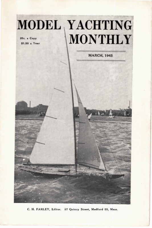 C. H. FARLEY, Editor. 87 Quincy Street, Med’ford 55, Mass. MODEL YACHT RACING ASSOCIATION 1921 – OF AMERICA – 1945 The t)biect of this Associatii.in is to encourage and promote the designing, buildmg, alld r<`cillg of mode.I sailin;;. .yachts, and to establish uniform I.ules and regulatious foi' t,he coiiduct of tlie si ort. Model ya,cht clubs in the United States or possessions having a roster of not less than ten .]1emb€..rs lirc elig.ible for membership in the M. Y. R. A. A, Annual dues aLrc ten dolliirs. Appliciitions for. membership shall be mflde ill wi'iting to 6]ie Natiolial Secretal.y, aild shall be signed by the Commodore and Seci.ctory of tlie .qLpplicant club, stating` the number of membei.s the applicant club hits, and accompanied by a i-.et. of tell dollai's, as dues f or the calendar year, to bc returned if the a,I)plii`,ation is ]`ejected. A n`odel }.acht oolr`peting in ally National Divisiolitll or Invitation Regatta musL be registei.ed in the M. Y. R. A. A. Mcmbei` clubs i`ro gi.ou|)ed in divisiolis, the Eastern, Mid-western, and Pacific, and ai.e units forniing the M. Y. R. A. A. Each division has its o\vn regiontll oflicars and di','isioiial cliampionship I.aces. ..l`he National Associatioli h`is dii.cct chai.ge of tl`e NatioL.al Cllampionships a]id otlier Nationul Ruces, und promulg`i`tcs Rules and Re`g`1latlous t`or the conduct of the sport. J,,,,,,,ll,\,,,',,,,l',\,,\,,|,\,,\,|,,,I,\,,\l'|,,t,,I,,,\,,|,\.,\,,,',.,I,,,,\,I.,\,,\,', YOU SHOULD joIN THE M. Y. R. A. A. BECAUSE YOU OBTAIN Protei.t,ion of it,s Constitutioi`, Rt;gulfltiolis, Sailing and Rating Rules. Pi.estige for your hobby.. club and Country. Opportuiiity to share the destinj' of your chosen sport, nationally, a]id politically. locally, natiolially, iiiter, Inductance into tlie finest comradeship of any sport. A wider social radius of friends a]id kindi.ed spirits. Participation in Dii-isional, i`-ationa,I and Internatonal reel.eative competition. A greater siitisfilction from the time and substance expended aiid the o.xpei.icncc gained. q,,,,\,||,\|,\,+*\,~,,I,\,,,',,,\,,\,,I,\ll,\,,,,,,|,,,|',\,,\l',,,\,,,l',.,,,I\,h,\J YOU SHOULD SUBSCRIBE TO MODEL YACHTING MONTHLY BECAUSE YOU OBTAIN Official repoi.ts of what is going on. Latest National and L{toal news. Instructive anil infoi'mative articles. A liberal educatioli in all aspects of Modern Model Yacliting. Up-to-date plans of successful yachts of all classes. A broaLd exchange of aesthetic, scientific and practical ideas and infoi.mation. Photo repi-oductions of yachts in a(.tion and their skippers and their haunts. Columns devoted to genei.al discussioll, new ideas, suggestions and comments. SUBSCRIPTI.ON, ONE YEAR, $1.50 MODEL YACHTING MONTHLY VOL.I, NO.1 MARCH,1945 A MESSAGE FROM OUR PRESIDENT Model Yacht Racing Association d£ America, and the Editor and his as8o~ ciates wish to provide you with closer knit fellowship, inspiration, the latest in designing, building and racing tech- niques and a medium of rapid exchange of ideas and opinions. Through these things we will grow. Keeping in mind that wie are all working toward the same goal, the contribution that Model Yachting as a Recreation can make toward better, I uller and more enjoyable living, we can find our different and varied appl.oac'hes to this goal interesting to each other through these pages. If you are not already an active Model Yachtsman, we hope to interest you to become one, if your are a Model Yachtsman and do not belong to a club we hope you will join one. ..{f` TED HOUK, President Dear fel)ow model yachtsman, Model Yachting Monthly represents the cumulative efforts of many model yachtsmen, whose motives are purely the preservation and advancement of our interesting Sport and Recreation through the difficult wair years and beyond. ..In establishing ``M. Y. M.", the clubs and Executive Committee of the PHOENIX SPORTS CLUB The Phoenix Sports Club has just been elected to memberchip in the MYRAA. This club i8 situated in Philadelp'hia, and i8 a group of enthusiasts with 100% model yachting spirit. They will have a fleet of 14 M'8 and 3 A'8, and in addition plan to build an X-Class fleet. We sinceirely hope this new club will get right into the competition and go places. Welcome, fellows, we are glad to have you among us. your club is not a ,meniber of the Model Yacht Racing A8sociation of America, we cordially invite you to join with us in planliing and living out the future of Model Yachting. We all hope that you will enjoy our :::tr?bffiuctfea]tom:tgsa:;an=:8a::dti:stg::n:i;:i support. The Editor and his Staff are furnishing their efforts gratis, and for this they have our continued praise and thanks. I am sure that you will join with me in wishing their efforts to be crowned with great 8ucce8s. Happy Sailing, Ted Houk, President, M.Y.R.A.A. PLANS NEEDED ! We need plans for A, M, 6-M and X-Class models. For good reproduction draw in ink. Include waterline8, buttocks, diagonals and rabbet-line if possible. Draw sail-plan about 1-8 or 1-10 Size and have body plan full size, with profile and plan view half-Size, or make all full size or half size. Make lettering large enough so it can be read w`hen r'educed` to 1-5 Size for A and X Class and 1-4 size for 6-M and M-class. Get everything on one sheet please! .`J EDITORIAL NATIONAL NEWS This first issue of Model Yachting Monthly demonstrates what i8 in store for Subscribers. It is your magazine, for your entertainment, information and edification; for exchange of ideas, and for discussions with each other. Do you want to know what i8 going on? Have you a squawk, peeve or phobia? Have you any constructive ideas, Mr. Archie Arroll has been appointed Chairman of the National Open Water inventions, theol.ie8, 8ug,ge6tion8, pic- tures, drawings, plans, cartoons? You do not have to remain inarticulate any longer. We know you can and will back up this publication. .We need a lot of material. Send in the local news and gossip about Jo