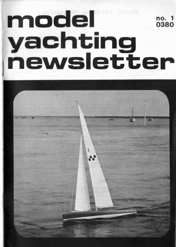 model yachting newsletter no. 1 0380 stakes! Ma Newsletter Yachting Model aims This is the first issue of what is hoped will be a quarterly magazine devoted to the interests of all model yachtsmen. It has been produced to test the appeal contains a number of articles of of such a venture, and as a result general interest so that it can also be used as a publicity handout at exhibitions and shows this year. contents Future issues will contain news, major race reports, design articles and a forum for contributions on any model yachting matters of general interest. It is not an M.Y.A. MeY.A. official document but space will be made available for the to keep yachtsmen advised of their activities. contributions We have been promised the co-operetion of the following people who will pass on your comments and also write for the magazine from time to time. North West:- Joyce Roberts, 51, Edinburgh Drive, Prenton, Birkenhead, Merseyside 143 ORJ. Telephone 051 608 8252 North East:- Peter Maskell, 13, Bryan Street, Farsley, Pudsey, Yorkshire LS28 5JP. Telephone Leed 566880 Midlands:- To be appointed. South West:- Neil Rothwell, 20, Kingswood, Bristol. South East:- Peter Cobban, Telephone, New Cheltenham Road, Telephone Bristol 615497. 2, Middle Close, Epsom, Surrey. Epsom 25587. We welcome all constructive views on this issue and will respond to these. you want to submit reports or articles, area representative. If either send them direct or through the Ideally typed on A4 paper but handwritten if necessary. publication dates We will publish quarterly in June, September, December and March. must be with us by the end of the month prior to this i.e. All copy end of April for June issue etc. subscriptions The basis of the publication is as a non-profit making venture to supplement the major magazines. We have set up a bank account to receive all contributions and we must expect to break even in order to justify our efforts. will mean more photographs and line drawings, and eventually, if required. More income perhaps more pages Subscriptions will run from June to March which will enable us to calculate our basic income once @ year and plan aheado 1980 Subscription is £3.00 post paid U.K. £5.00 post paid abroad. Please send your money to:- Model Yachting Newsletter, 81, Nipsells Chase, Maylandsea, Chelmsford, Essexo advertising We are pleased to say that this issue has been supported by a number of suppliers of modelling goods and we are happy to accept any further material. Copy should fit into a standard quarter page 180mm x 60mm before photo reduction and we will make up the final leyout in a style similar to the examples in this issue. Anyone feeling generous can have a half page at 180mm x 125mm. At this stage we are not able to use photographs in advertising. All advertisements will only be printed if paid in advance. and….. We hope we have provided all the information you need to justify your support. We will only succeed if we have the co-operation of all interested modellers and on that depends our future. Behind the scenes we have 2 number of people who can help with articles etc. but in the end it is very much a private spare time effort and to keep this in bounds we must have your understanding for the odd error here and there. As we gain experience we hope to slot in more pictures end only trial and error will show how far our printing facilities will allow us to go. All correspondence to:- Chris. Jackson (Editor) Model Yachting Newsletter, 81, Nipsells Chase, Maylandsea, Chelmsford, Essexe a. A WELCOME FROM THE M.Y.A. It is with much pleasure that a warm welcome to the new magazine CHAIRMAN I write on behalf of the M.Y.A. and to wish it all the to give success it deserves. Since the demise of the “M.Y.A. News” in 1975, after publication of 145 issues from way back in 1947 we, as the oldest and foremost Model Yachting country in the world, have been without a national publication devoted entirely to the sport. Two abortive attempts were made to revive the “News”, but it became clear that it could not be self-supporting without and the co-operation of district correspondents advertising revenue and individual contributors plus, of course, an enthusiastic and experienced Editor, with the time to devote to preparation and distribution. These criteria for a successful production would seem to have been achieved with the team of Chris Jackson and Graham Bantock, both of whom are very experienced model yachtsmen, who are fully aware of what the readership requires. Volunteer contributors from most of the districts have come forward, so the magazine’s content will be well spread over the whole country and it will not just be a parochial paper. After Vic Smeed resigned as Editor of “Model Boats”, this magazine has gradually reduced its coverage of model yachting news and articles. It is now generally felt that it is not worth paying 50p per month just to read “Log Book”, which is effectively all a model yachtsman gets for his money. This is not meant to decry “Log Book”, it serves a useful purpose by keeping the sport in the public eye, but model yachtsmen require much more — up-to-date Championship and Regatta reports, M.Y.A. Council decisions and information, informative articles and controversial articles attracting correspondence — all are necessary to keep everyone informed and ensure a lively and healthy state of the sport. This is why the magazine will fill a much-needed gap in the model yachting scene. The American M.Y.A. has successfully published a quarterly magazine for the past ten years. It is very well supported by contributors from all over the U.S. and also from other countries. There is no reason why the new magazine should not meet with the same success, provided all members of all Clubs support it. This is essential. It is just not good enough for a Club to subscribe and then let its copy be passed round the membership. to pay for a magazine such a