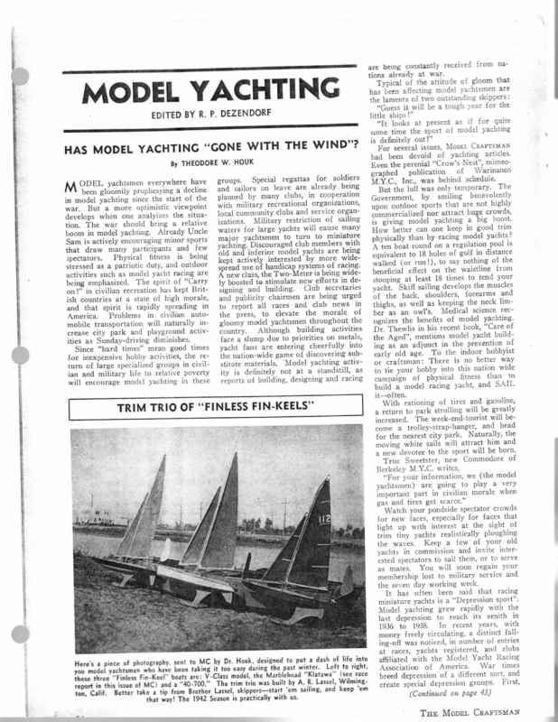 - Has Model Yachting “Gone With the Wind”?. By T. W. Houk