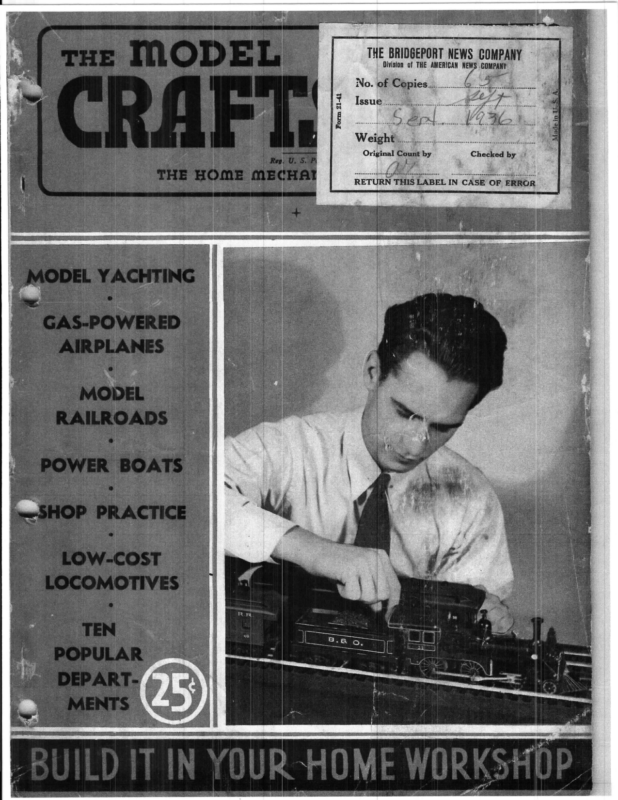 Sted my ae =) Dx ;=5: S hi,\=e= 4= 3 ae \ OL.I0 – i %r,d e op:‘ r¢:‘ e‘2 LS 3: % P, = 2 ‘5 i= ‘ “g ne. z i + geia i SN SH THE MODEL CRAFTSMAN Top left; “Blue Chip,” Boston M. Y. C. National Champion. William Bithell, who has taken this boat to Europe for the International Class “A” races at Gosport. Top, right; John Black, seated (skipper) and Don Manning, mate. Marblehead entry. Mr. Black has sailed for Europe as mate to Wm. Bithell. Center, left. Archie Arroll, Detroit M. Y. C. Western Champion. Center, right; George Steinbrecher with ‘Comanche,’ In oval, Eugene L. Cheney, President, M. ¥. R. A. A. Lower, left; Standing, l. to r. Walter Foote, Max Grabowski, Robert Bickley; Seated, Archie Arroll, Don Steinbrecher, Bob Buckley. Boats, “W, W. J, “C he,” “‘Lochii Asn Lower, right; Western Champion, Detroit Model Yacht Club, “W. W, J.” owned and sailed by Archie Arroll, The 1936 Class “A” YACHTING FINALS By HARVEY BARKUS as reported in THE DETROIT NEWS @ When the final round of the National Class A Model Yacht Championship races started on July Ist, in the Belle Isle, Detroit, Basin, Comanche, sailed by George Stein- brecher of the Detroit Model Yacht Club, had a one-point lead over Blue Chip, sailed by William Bithell of the Boston Model Yacht Club. The two were drawn against one another in the first race. Blue Chip took the beat and then the’ run, scoring five points and thus having a four-point lead. The race between the two leaders decided the National Championship. Blue Chip went on to win with four more beats and two more runs, finishing up the day’s sailing with a grand total of 98 points for the three-day regatta. Comanche was close behind with considered by everyone as a dan- gerous contender not only because of its remarkable sailing qualities but also because of the fact that it will be handled by an able skipper and mate. Bithell will serve tional Black Champion, will be mate. is recognized as the most able model yacht sailor in the United States and his experience in past International Regattas should be of the greatest value towards winning the Championship. An unfortunate accident alone prevented his entry from scoring considerably higher than it did, and nobody who has seen his able handling of model yachts has any doubt that this was the reason for his score being what it was. The Model Yacht Racing Association of America, through the efforts of its President, Eugene L. Cheney, is, for the first time, sending both a mate and skipper Thus, the 25-year-old Bithell be- came the National second Champion successive for year. Last year he won with his Yankee IJ. The young Boston Skipner will represent the United States in the In- ternational Regatta at England, in August. _ Gosport, Third place was taken by Loch- tmvar sailed and owned by Bob Buckley of St. Louis, with the ex- cellent showing of 82 points. Charles H. Farley of Boston, with Scherezade, made 75 points; John Black of Marblehead was fifth with Bostonia points and V which Archie scored Arrol’s 54 WWJ of the Cadillac M. Y.C. was sixth with 48 points. While no American sailing model has ever won the exception of the fifth round on the afternoon of Tuesday, May 30th, when it was handicapped by wet canvas, this model averaged more than 16 points to the round, winning 22 out of 30 beats and 16 out of 30 runs. The Detroit News presented trophies to six contestants in the National Races, additional prizes going to WWJ, Comanche, and Lochinvar that finished first, second and third respectively in the Mid-Western Regatta that decided the National entries from that section. four beats and three runs, totalling 93 points. the as skipper and Black, six times Na- with the winning model. In view of the fact that this expenditure is by no means small, even for an association as well established as the M. Y. R. A. A. great credit should be given to the energy and public spirit of Mr. Cheney and his associates, who made this possible. The sailing of Blue Chip was fairly consistent throughout the entire three days racing. With the Class A. Boat Mid-West Finals Skipper WW] Comanche A. Arroll D. Steinbrecher Club Points Cadillac Detroit 65 64 Lochinvar Robert Buckley St. Louis 61 Rene III Warren Lee Tre-Pol-Pen 52 Detroiter G. Steinbrecher Detroit 5] Coquette Mohawk Maen Mildred II Mizpah Glenshee Circe Tom Malloy G. Barron L. E. Troeger W. J. Palmer FE. L. Cheney J. McKinney F. Lippold Chicago Ogden Park Chicago Chicago Saugatuck Ogden Park Chicago 50 46 46 46 46 44 35 Bertha Marvey II Ed Phillips H. Miller Trelawney Detroit Y. C. 34 32 Lark IT C. Hands Adventure Stag IV Rene II W. J. Comstock Ray Palmer Columbia Grand Traverse Joe Mack International Championship, Blue Chip must be Final scores at Detroit Page 5 31 Chicago 27 15 Tre-Pol-Pen 14 MODEL CRAFTSMAN, The Home Mechanic’s Magazine for September, 1936 20 a simple compass, rigid enough for accurate work is all you’ll really ueed. A sharp pencil, preferably with a hard lead is used; the harder the lead, the less often it needs to be sharpened. The locomotive is planned The Origin and History of the MARBLEHEAD 50-800 Class Model Yacht by drawing the side elevation first. Lay out the driving wheels first, making sure you allow a large enough wheelbase so the flanges don’t touch. Of course, on certain loco- motives, where the wheels are widely spaced, this does not need to be considered. The cylinder blocks and pony truck must be worked on as a unit, and it may be necessary to make some of the compensations mentioned above, in order to provide clearance for sharp curves. Lay out the boiler center line, then make sure that the widest part of the boiler clears the driving wheels. The next important step is making provision for the motor. There is now available a little permanent magnet motor, intended for HO gauge locomotives, which is small enough to take care of motive. desired, sary to almost any kind of locoIf a regular AC m