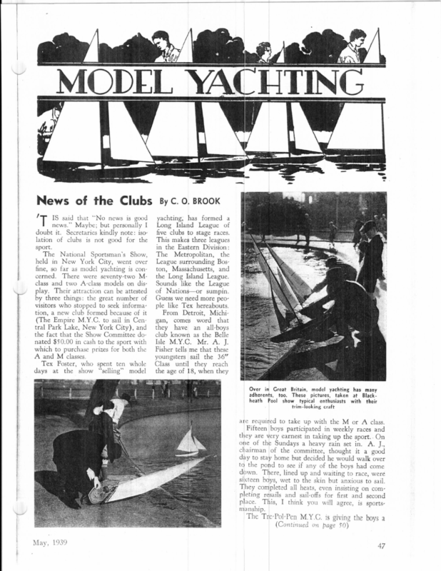 - Organizational Moves: There is a push for Mr. Greely of the Washington M.Y.C. to become the next President of the National Model Yachting Association.