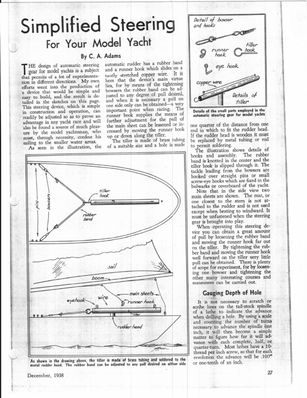 - Simplified Steering for Your Model Yacht. By C. A. Adams.