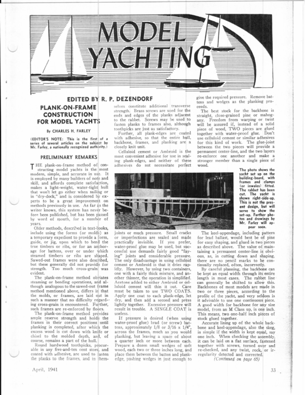 - Plank-On-Frame Construction for Model Yachts. By. C. H. Farley.