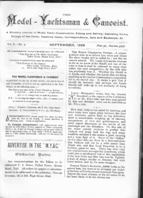 The Model Yachtsman and Canoeist: Volume 10, Issue 10 – October 1893