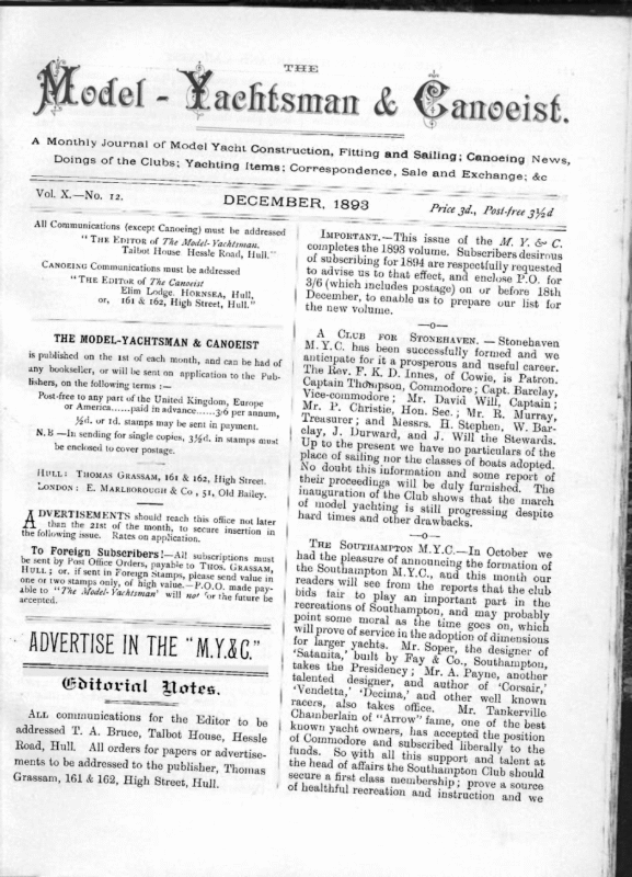 The Model Yachtsman and Canoeist: Volume 10, Issue 12 – December 1893