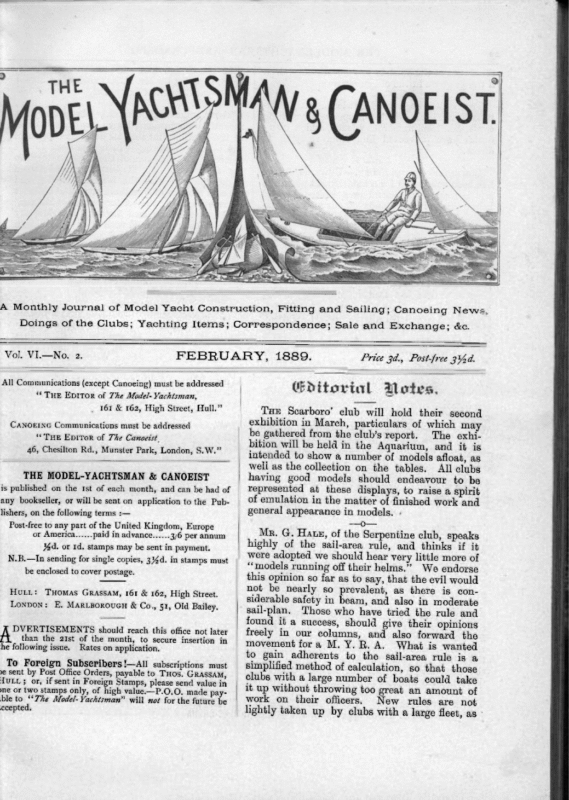 The Model Yachtsman and Canoeist: Volume 6, Issue 2 – February 1889