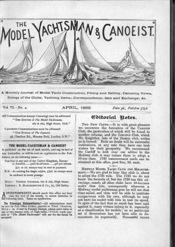 The Model Yachtsman and Canoeist: Volume 6, Issue 4 – April 1889