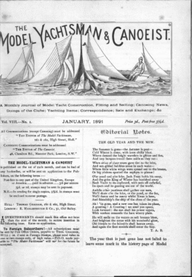 A Monthly Journal of Model Yacht Construction, Fitting and Sailing; Canoeing News, Doings of the Clubs; Yachting Items; Correspondence; Sale and Exchange; &e Vol. VII.—No. DECEMBER, r2. All Communications (except Canoeing) must be addressed 161 & 162, High Street, Hull.” CANOEING Communications must be addressed “THE EDIToR of The Canoe?s?, 46, Chesilton Rd., Munster Park, London, S,W.” THE MODEL-YACHTSMAN & CANOEIST is published on the rst of each month, and can be had of any bookseller, or will be sent on application to the Pub- | Post-free to any part of the United Kingdom, Europe or Ameriea…… paid in advance….., 3/6 per annum Jd. or Id. stamps may be sent in payment. N,B,—In sending for single copies, 344d. in stamps must be enclosed to cover postage. HULL: THOMAS GRASSAM, I61 & 162, High Street. LONDON: E. MaRLBoroucGu & Co., §1, Old Bailey. DVERTISEMENTS should reach this office not Jater than the 2ist of the month, to secure insertion in the following issue. Kates on application, To Foreign Subseribers!—All subscriptions must be sent by Post Office Orders, payable to THos. GRASSAM, HULL; or, if sent in Foreign Stamps, please send value in one or two stamps only, of high value.—P.O.O. made payable to “*7he Model- Vachtsman” will not for the future be accepted. Price 3@., Post-free 7%¥%d. Gditorial “THE Epiror of 7he Afodel- Yachisman, lishers, on the following terms :— 1890 Uotes. Our Metropolitan friends will be glad to hear that the Parks and Open Spaces Committee of the London County Council have favorably entertained a communication from us and have decided to carry out the work of removing the island, &¢., at the pond on Wandsworth Common as suggested. Besides the model yachting side of the question we called attention, as we have done to other authorities—that to be sanitary and beneficial water spaces of moderate area should not be surrounded closely by trees nor blocked up with islands. The surface should be iree and open to the wind from all quarters so that it may get that agitation and motion which keeps it pure and sweet. This should be noted by all Model Yachtsmen approaching local authorities, and the action of the London County Council may be borne in mind, too, as a proof of the importance of the argument. OPEN Competition for 15-raters, at Bradford, on Haster Monday, 1891. The Waterproof Glue Co., 62, Dale St., Liverpool, have offered a challenge prize of not less than £5 5s. in value for the above competition, which we trust a large number will build and enter for. We cannot find space for the rules and 222 THE MODEL-YACHTSMAN regulations, but a copy can be obtained for one penny at this office. Mr. Richardson’s letter on the subject will be found in our correspondence column. . —oO— THe WATERPROOF GLUE Co., 62, Dale Street, Liverpool, have sent us a sample of their glue, which is now sent out in cone-shaped tins instead of the air tight tins so well known in connection with paints. To get a dose of the glue there is no occasion to foree open the lid as in the old tin: itis merely necessary to with- draw a small pin and handle the tin in much the same fashion as the small oil feeders; a little pressure on the bottom sends out the required quantity of glue, when the pin is again inserted and the contents are kept as tight as if bottled up. The fault of the old tin was that after usage a few times it fouled at the lid and became no longer an airtight case. Now the model yachtsman and the amateur can be sure of fiuding this handy friend has not deteriorated with time, and that he is as ready to trickle forth in small or large quantity after he has been on the shelf some time as he was when first bought. LIVERPOOL AND SOUTHPORT MODEL YACHT CLUB CHALLENGE CUP. The second race for the above cup (length and sail area 20 rating) took place on the Marine Lake, at Southport, on Thursday, 23rd October, and although the entries for the trophy were not so good as expected, still the way the various boats sailed their heats inade up for the paucity of competitors. The heats were sailed as below : ‘Daisy,’ Mr. T. Case Morris, L.M.Y.C. ‘Windermere, My, John Ellis, 8.M.Y.C. ‘Aziola,’ Myr. John Hall, M.M.Y.C. ‘Olive,’ Mr. Bibly, 8.M.Y.C. ‘Thistle,’ The Messrs. Bower, L.M.Y.C. ‘Elaine, Mr. F. N. Darbyshire, L.M.Y.C. ‘Mystery,’ Mr. John Holforce, 5.M.Y.C. ‘‘Atheling,’ Mr. W. H. Dreaper, 8.M.Y.C. ‘Advance,’ Mr. Andrew Crawford, L.M.Y.C. ‘Lezare, Mr. Holbrook Gaskell, L.M.Y.C. The heats were won by ‘Daisy,’ ‘Aziola,’ (‘Olive being thrown out, as on being measured was found to be over the tonnage), ‘Aziola’ in consequence being given the race, ‘Thistle’ (in good style from ‘Hlaine’), whilst ‘Adtheling’ in 4th heat made quite an example of ‘Mystery,’ the latter not being able to sail the course, indeed she never once went through the flags, and something seemed radically wrong with her all the day. The ‘Advance’ (the holder of the eup) beat the ‘Lezare’ in the 5th heat, in easy fashion, and which event created quite an excitement, as | AND CANOEIST it looked as if the latter part of the match was going to be toughly contested. The winners in the 2nd course of heats were :—‘Daisy,’ ‘Thistle,’ ‘Aziola,’ ‘Advance’; and in the 8rd and final the result was: ‘Advance’ lst (taking cup for second time) and first prize, ‘Daisy’ 2nd and second prize, ‘Thistle’ 3rd and third prize; the winner on passing the flags being cheered on his gaining his second victory. In the blue ribbon of the Southport Lake the day’s racing on the whole was not so satisfactory as might have been desired, as the wind was in a bad quarter making the course a broad reach instead of the hoped for beat to windward, and thus favoring very much the long and flat floored ‘Advance,’ it was not so much due to her speed but to her steady sailing on the long reach (500 yards) that secu