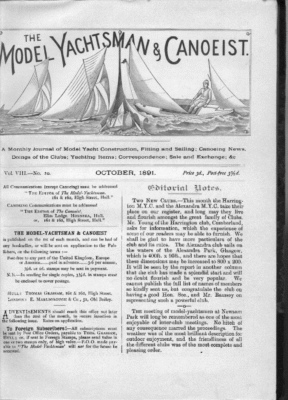 The Model Yachtsman and Canoeist: Volume 8, Issue 11 – November 1891