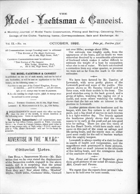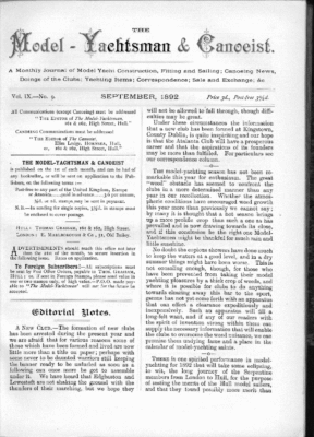 The Model Yachtsman and Canoeist: Volume 9, Issue 10 – October 1892