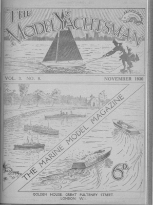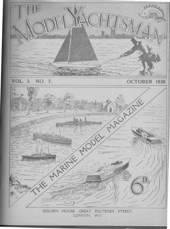 GOLDEN HOUSE, GREAT LONDON. PULTENEY W.1. STREET, October 1930 The Model f {NY Yachtsman. f SAILS of Best Union Silk in 3 Grades SALES AND WANTS. Flags & Pennants Advertisements wre inserted in-these columnact the rate of One Penny per word; minimum charge for advertisement any size and design. One Shilling. Sizgle letters or figures are charged as words, and @ compound word as two words, The advertiser’s name and address are charged for A charge of 6d, extra to cover postages is made for *Box’’ Replies, appear care of these offices, at SAIL CLOTH The following words must the end of advertisement; ‘“Box——, ‘Model YashismanTM’ Offices, for which usual rate per word will be charged. When (Advertisers need not include our full address). repiying envelope: to Advertiser, «a “Bex Ne” Advt., address your Box——, “l’ha Modal Yachtsman,”’ Chas. Golden House, Gt, Pulteney St., London, W.1. Advertisments for theese columns must be aecom- panied bya remittance, either by Postal Order or stamps, and addressed to the Advertisement Manager, “The Model 8, Ullswater Rd., Yachtsman,” Golden House, Gt. Pulteney St,, London, W.1. Announcements must reach these offices not later than the 10th of the month preceding the month of issue. ising Boats for Sale or These will be colussified under their separute headings; unclassed FOR SALE. L.W.L. 40in. 12-RATER MODEL CUTLER. Automatic Fin Keel. Sail Area 1872 sq., in. perfect built Norwood, §.E.27: Models, and articles other than Boats, wider Miseellaneous. Rudder, West In advert- Wanted advertisers should state, where possible, “Class of Boat.” Drown, construction. New. . Py a > VV. H. Bauer’s Tested. £30 or reasonable offer. Mills, 25, Central Road, West Didsbury, Manchester. Model and Yacht Repair Fit-out Service. Sails Fittings Spars Steering-Gears & Accessories for all ‘¢‘Model Yachtsman’”’ Prize BOOKS. We can obtain any and other designs. Books for TO readers, whether in our Library list or not, enquiries. name send Where us_ Send your ORDER stamp for ONLY!! price List. possible the of Publisher should be Workshops: given. 237, Goldhawk Road, ‘*Model Yachtsman’’ Offices. V London, W.12 THE MODEL AYACHTSMAN| | “a teen ——_— A mor… No. a ~~ MONTHLY MAGAZINE FOR MODEL YACHTSMEN. 7. OCTOBER, THE M.E. 1930. EXHIBITION. September 4—13. The Medel Power Boat Association not display of model power craft. some previous years, but they certainly included amongst club exhibiting other was the The only power boat Ilford exhibits, ee most interesting one. We are not sure whether the marine exhibits were quite as numerous as in some very fine work. were exhibiting this year, and we missed their usual fine staged M.P.B.C.. the which, model steam ee A° usual, the annual exhibition organised by our contemporary, the Model Engineer, was a destroyer, “‘ Tyrant,” and the metre steam launch, and Club exhibits, the Model Yachting Association was conspicuous. The exhibits included ‘ Albion” (A Class), fresh from her international victory, and a marvellous display of the cups she has won In the loan interesting very lovely This was prisoners section models. little of made war. were a particular model probably of there In an by This number we noticed 84-gun one little a warship. of the model of French has been during the two seasons she has been afloat. “ Flying Cloud ’’ (10-rater) was also shown. She is a sister exquisitely restored and re-rigged, and we under- ship re-conditioning her. to ‘Flying Spray,” published in THE MODEL whose designs were YACHTSMAN early in the year. There was also a nicely planked little boat, built from the lines of the Lorne Corinthian Dinghy, which butter Mr. W. model J. we also published. in course Daniels, A bread-and- of construction, also created a good lent deal by of interest. A model of rather different character was a charming Spanish Galleon (16th Century). exhibited by Mr. W. H. Bauer. This keautifvl little ship was constructed from the designs given in the first volume of Captain McCann’s_ beck (see advertisement in the Model Yachtsman’s Library). There was also a poster showing the new pond at Fleetwood as it will appear when completed. The walls of the stand were decorated by a selection of charming clipper ship pictures by Mr. J. FE. Ccoper. stood that two years was spent on ily le Society the ae onal dicen spell Mt | fA tina to task of In the competition section there were a number of good things. A model of H.M.S. 2nd Cruiser “* Hawkins,” flagship of the Squadron, 10 ft., was shown on a scale by Captain T. of 1 inch= W. Wall. Had we not been told that Captain Wall wes a cavalryman, we should have suspected him of being a naval officer, as his model betrays such an intimate knowledge wonderful of naval model ships. and even the Carley equipment; and even secondary and Every is complete. detail The ship’s of this boats, floats, have their correct the breech brocks in her anti-aircraft armament work correctly, and her paravane gear is equally exact. The hull of the ship is planked wpin narrow planks, and is a very nice job. It must have been very a Seales’ ab 6 Bogen he devoted oe section a) the en “ Spruce.” In 152 The Model October 1930 her machinery removed and been converted into a show model. This is one of the most complete models we have ever seen, and was built from the original blue prints from which the ship was An iron sailing ship, the ** Palmyra,” formed the subject of a fine waterline model by Mr. 8. Rowland. Another sailing ship model shown was, obviously, the work of someone familiar with sailing ships, but was not such a fine piece of work. The blocks were disproportionately large, and the upper yards constructed. too heavy. far from easy to do this properly over her blisters. Originally fitted as a working model, she has had Her builder is heartily to be con- gratulated on a fine piece of work. It is not often t