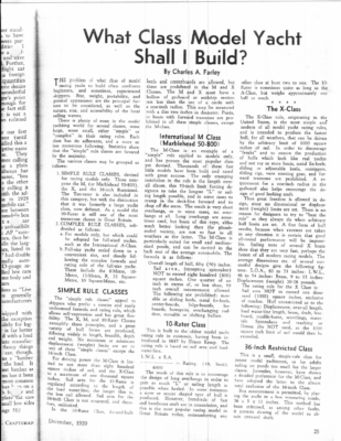 M. Y. R. “ x” A. A. CLASS (American 1,000 Square-Inch Sai] Area Class) RATING RULES Adopted Dec. 1939 by the M.Y.R.A.A. SAIL AREA (tota] NOT to exceed one thousand square inches, exclusive of roaches. HULL Hull, unrestricted as to the following: (1) Scantlings (6) Beam (2) Materials (7) Draft (3) Displacement (8) Freeboard (4) Load water line Jength (9) Tumble-home (5) Hull, Length over al] Restrictions: (1) Punts, Prams or forward transoms, prohibited. (2) Garboards: Hollow of garboard shal] NOT be LESS than an arc of a circle with a one inch ra- dius. May be checked by use of a disc two inches in diameter, fitted to garboards at any convenient station, (3) Ballast: Weight of lead ballast shal] be changed during a race or series of races. NOT Prohibited: (1) Sliding or adjustable keels. (2) A kee] havingaweb or fin of lesser thickness than 5/16” at its thickest place on its narrow- est waterline plane. (3) (4) (5) (6) (7) (8) Center-boards. Lee-boards. Bilge-boards. Bowsprits. Overhanging,rudders Outriggers, pontoons or twin hulls. (9) Movable or shifting ballast. (10) Prognatous keels; specifically: no portion of the forward or leading edge of the kee] appendage may project forward of any portion of the leading edge above. 54 M.Y.R.A.A. “X” Class RIG Rig, Unrestricted as (1) to the following: Any type of rig allowed, providing batten limits are not exceeded. (2) Alternate, or smaller rigs vided total] (3) limited. (4) sai] allowed, area Jimit is not exceeded. Height of rig, mast, pro- or forestay is not Masts‘and spars may be of any type, section or material, Rig, restricted as to the following: (1) The greatest diameter of mast and spars is limited to one inch. (2) Headsticks or headboards sha]] not exceed one inch across base. (3) Wire or other stiffening shal] not be put in head or foot of sails. Corners of sails may be re-enforced with the same material of which the sail is made. (4) Battens shal] divide the after leach/es into approximately equal parts. MAINSAIL not to exceed four in number, upper and Jower shal] not exceed four inches each in length. mediate battens not to exceed five inches length. JIB BATTENS not to exceed three in each not to exceed three inches in length. BATTENS battens [Intereach in number, (5) Roach of sails shal] NOT exceed two (2) inches. Rounded foot of loose-footed sails NOT measured. Prohibited: Spinnakers. (1) (2) Reaching or Genoa jibs. Sails unfairly sheeted or set No jib or foresail shal] main boom. Two minsai]s shal] be sheeted onto the not beset at the same time. VALIDITY OF CERTIFICATES (See “ Genera] Rules Governing Rating’and Measurement’’)., Rating certificates and Registration Cards are valid only during the calendar year in which they are issued, 55 M.Y.R.A.A. “X”” Class Any changes affecting the sai] area LIMITS cancels Measurement Certificate and Registration Card. A change of owner, club, or name of yacht cancels Measurement Certificate and Registration Card. The onus rests at al] times with the owner to notify his Club Secretary or Measurer of anything whatsoever that may necessitate re-measuring or reregistration. Fo]]owing any such change or alteration the owner shal] surrender his Measurement Certificate and Registration Card to the Club Measurer for cancellation, and such yacht must be remeasured and re-registered before it is again allowed in competition, X-CLASS SAIL AREA MARKS In the X Class, both mainsail] and jib shal] be marked with the officia] M.Y.R.A.A. stamp by the Club Measurer, in the lower corner of sail nearest the mast. The amount of the measured sai] area to be added in the space provided with waterproof or indelible ink. The official M.Y.R.A.A. stamp shal] be an equilatera] triangle with base and sides measuring 7/8 inches with the letters “M.Y,R.A.A.”’ at base, Such stamp to be of rubber and to be had from the M.Y.R. A.A, Registrar. SAIL AREA MEASUREMENT No fore-triangle measurement is taken, ACTUAL sail area, excluding roaches, (See “Calculation of Sai] Area”. only the is measured. ROACH OF SAILS Roach of sails shal] NOT exceed two (2) inches. Rounded foot of loose-footed sai]s NOT measured. CALCULATION OF SAIL AREA See “Genera] Measurement”, Rules Governing Registration and 56