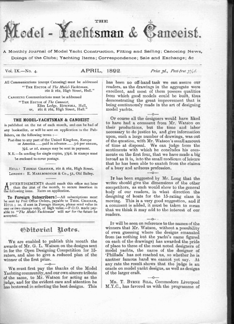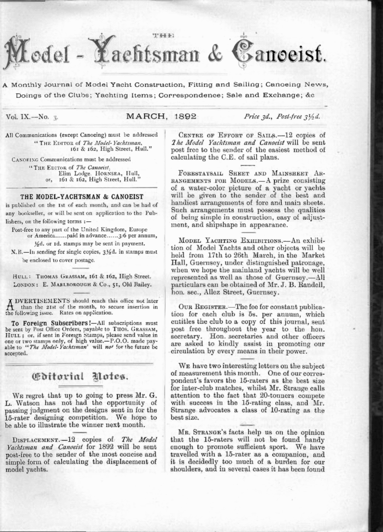 Archives, The Model Yachtsman and CanoeistThe Model Yachtsman and Canoeist: Volume 9, Issue 3 – March 1892March 15, 1892Read MoreThe Model Yachtsman and Canoeist: Volume 9, Issue 3 – March 1892