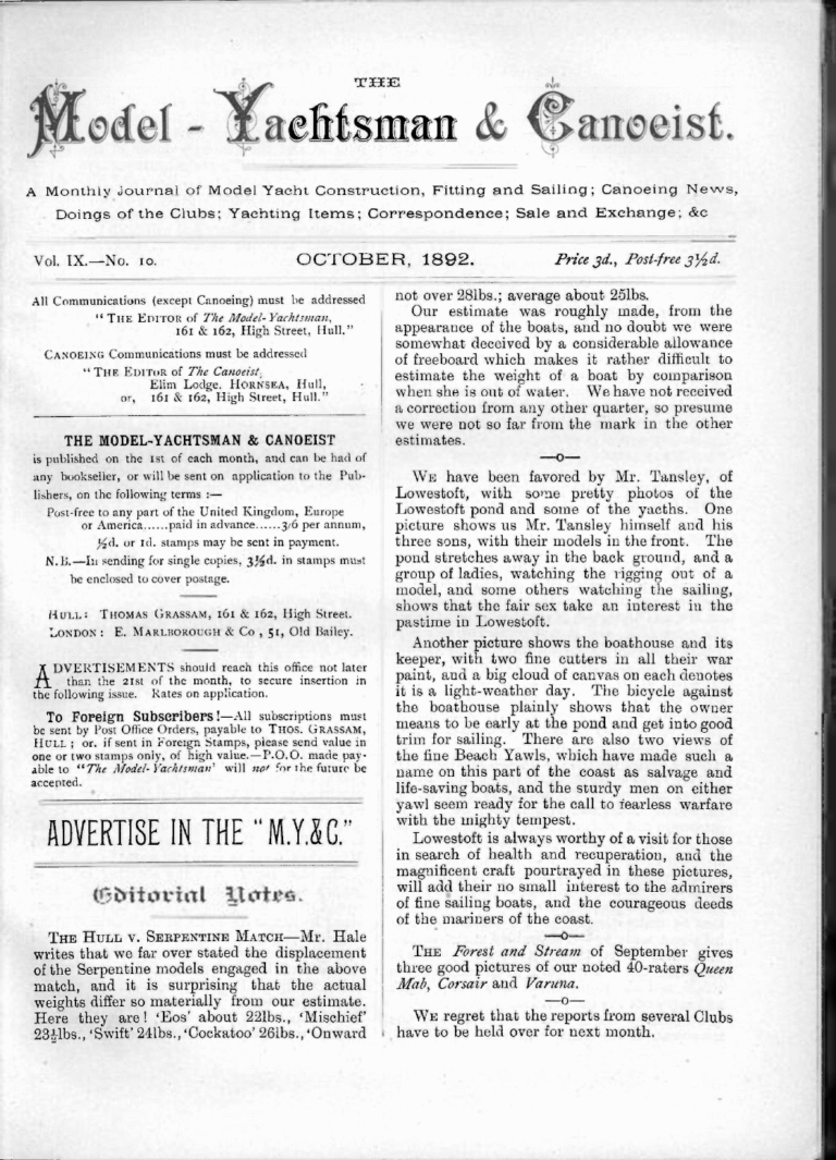 Archives, The Model Yachtsman and CanoeistThe Model Yachtsman and Canoeist: Volume 9, Issue 10 – October 1892October 15, 1892Read MoreThe Model Yachtsman and Canoeist: Volume 9, Issue 10 – October 1892