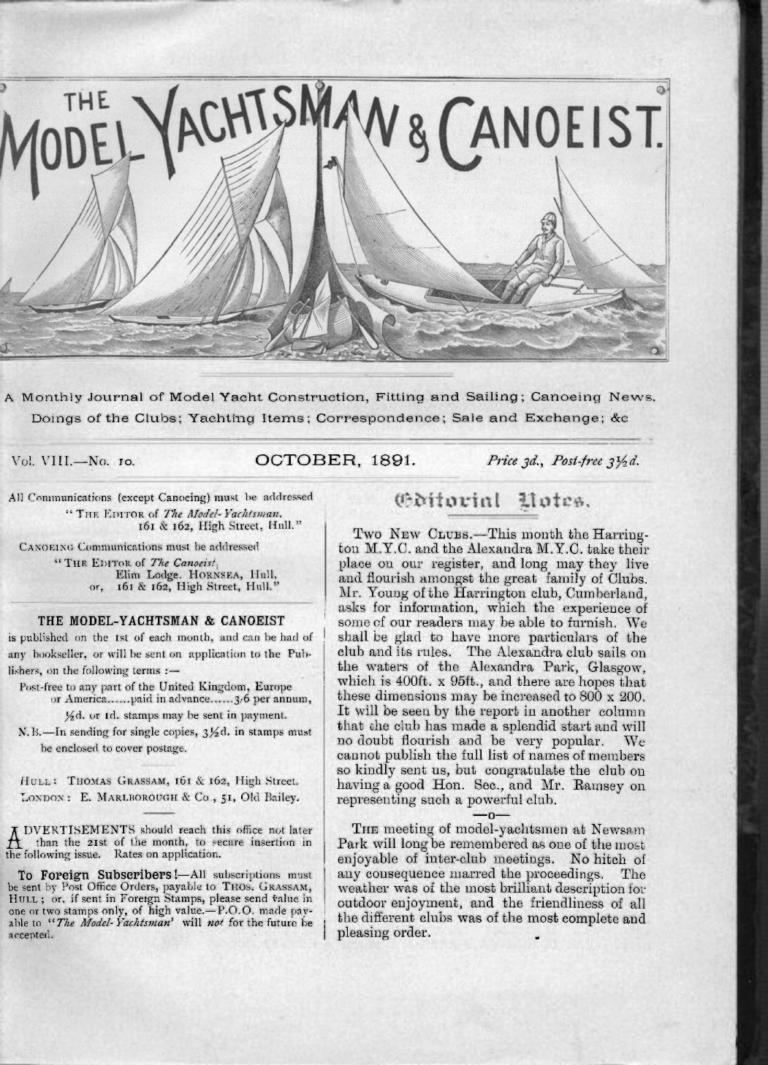 Archives, The Model Yachtsman and CanoeistThe Model Yachtsman and Canoeist: Volume 8, Issue 10 – October 1891October 15, 1891Read MoreThe Model Yachtsman and Canoeist: Volume 8, Issue 10 – October 1891