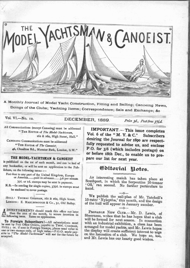 Archives, The Model Yachtsman and CanoeistThe Model Yachtsman and Canoeist: Volume 6, Issue 12 – December 1889December 15, 1889Read MoreThe Model Yachtsman and Canoeist: Volume 6, Issue 12 – December 1889