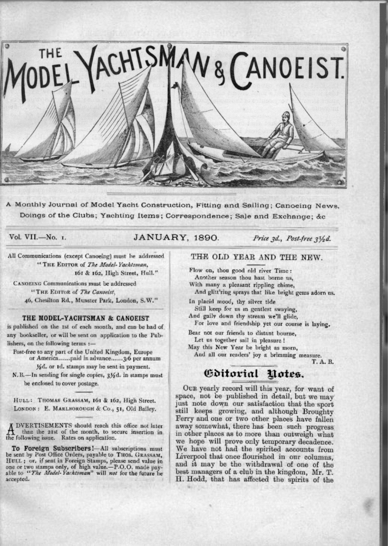 Archives, The Model Yachtsman and CanoeistThe Model Yachtsman and Canoeist: Volume 7, Issue 1 – January 1890January 15, 1890Read MoreThe Model Yachtsman and Canoeist: Volume 7, Issue 1 – January 1890