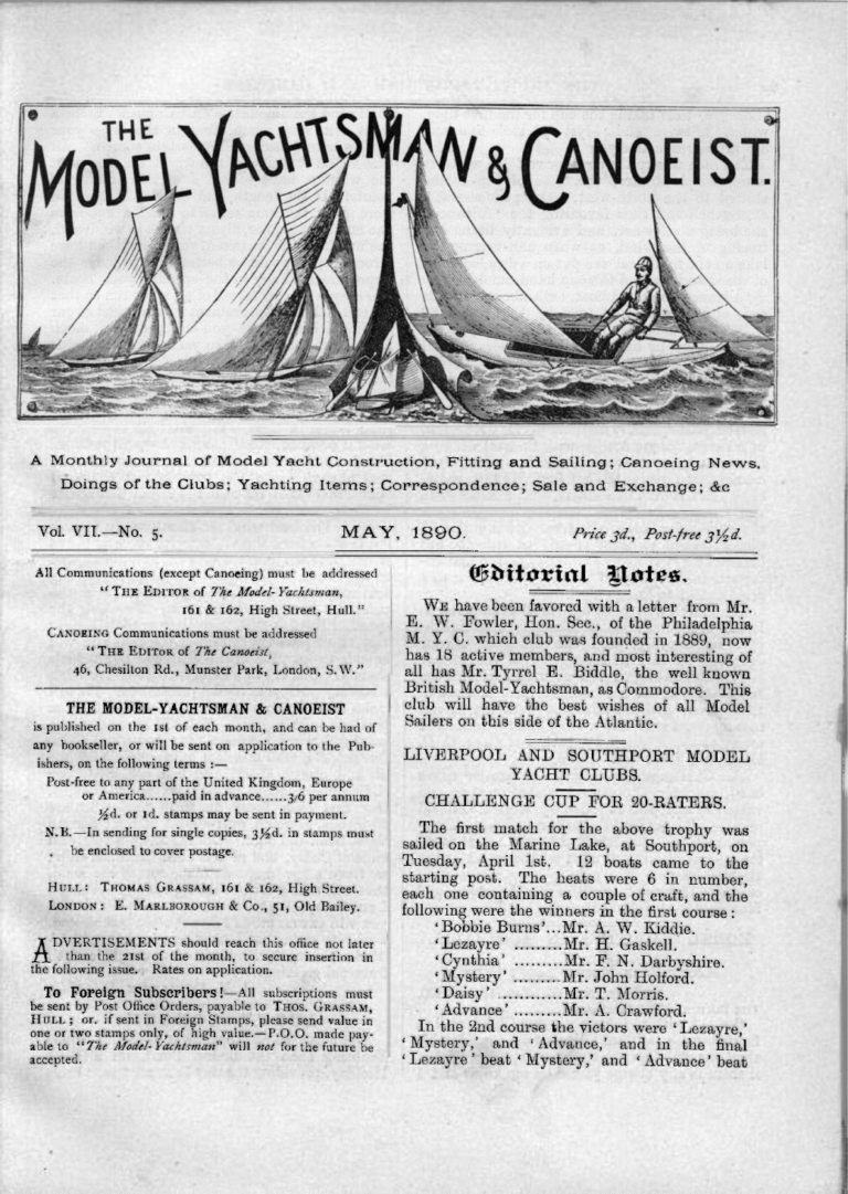 Archives, The Model Yachtsman and CanoeistThe Model Yachtsman and Canoeist: Volume 7, Issue 5 – May 1890May 9, 1890Read MoreThe Model Yachtsman and Canoeist: Volume 7, Issue 5 – May 1890