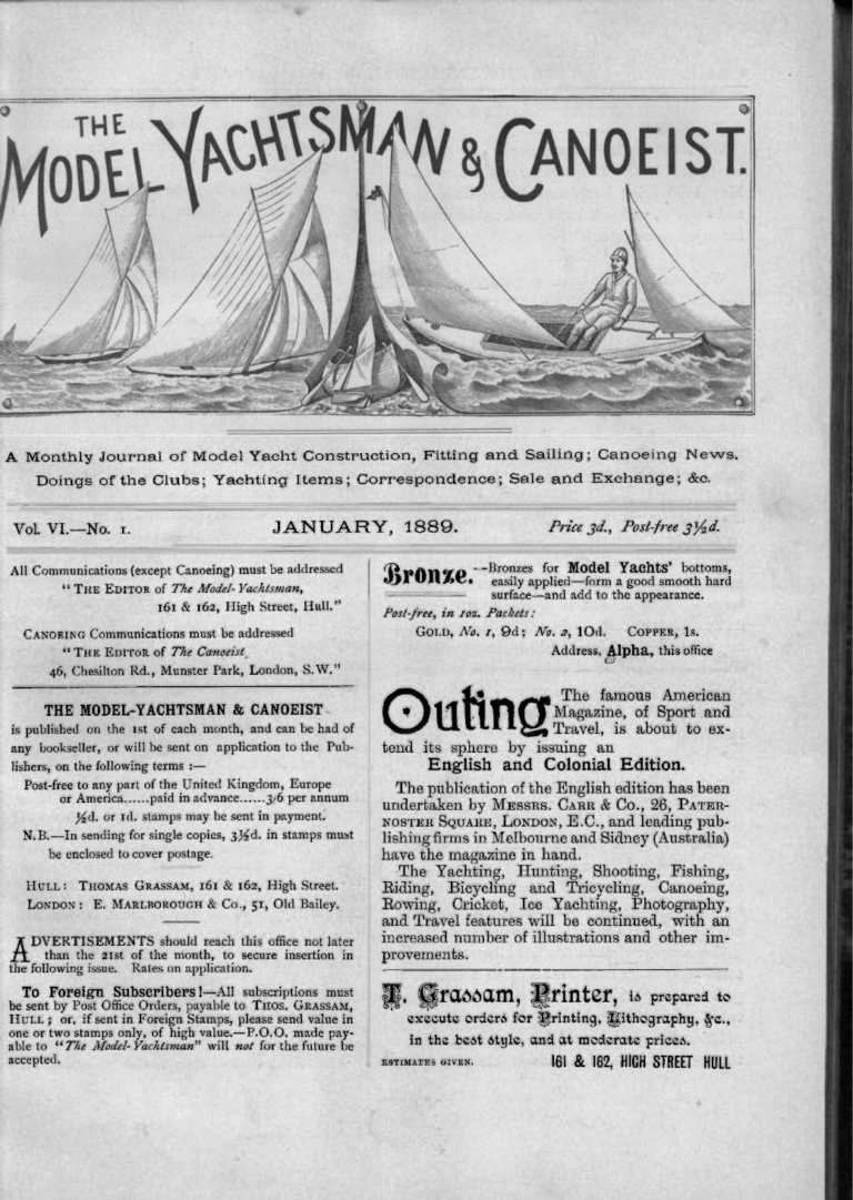 Archives, The Model Yachtsman and CanoeistThe Model Yachtsman and Canoeist: Volume 6, Issue 1 – January 1889January 15, 1889Read MoreThe Model Yachtsman and Canoeist: Volume 6, Issue 1 – January 1889