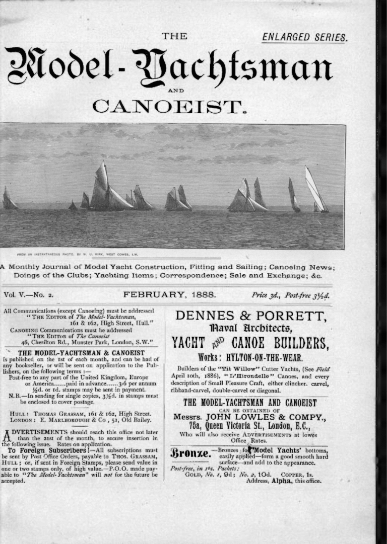 Archives, The Model Yachtsman and CanoeistThe Model Yachtsman and Canoeist: Volume 5, Issue 2 – February 1888February 15, 1888Read MoreThe Model Yachtsman and Canoeist: Volume 5, Issue 2 – February 1888