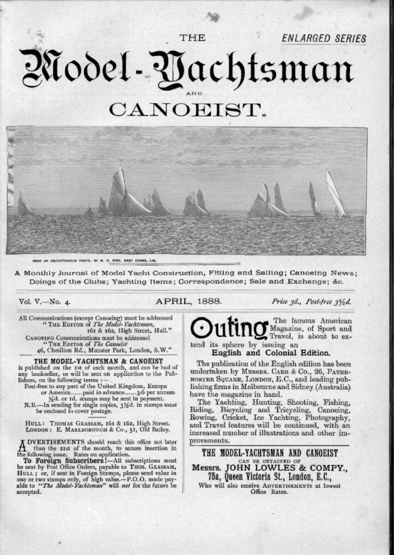 Archives, The Model Yachtsman and CanoeistThe Model Yachtsman and Canoeist: Volume 5, Issue 4 – April 1888April 15, 1888Read MoreThe Model Yachtsman and Canoeist: Volume 5, Issue 4 – April 1888